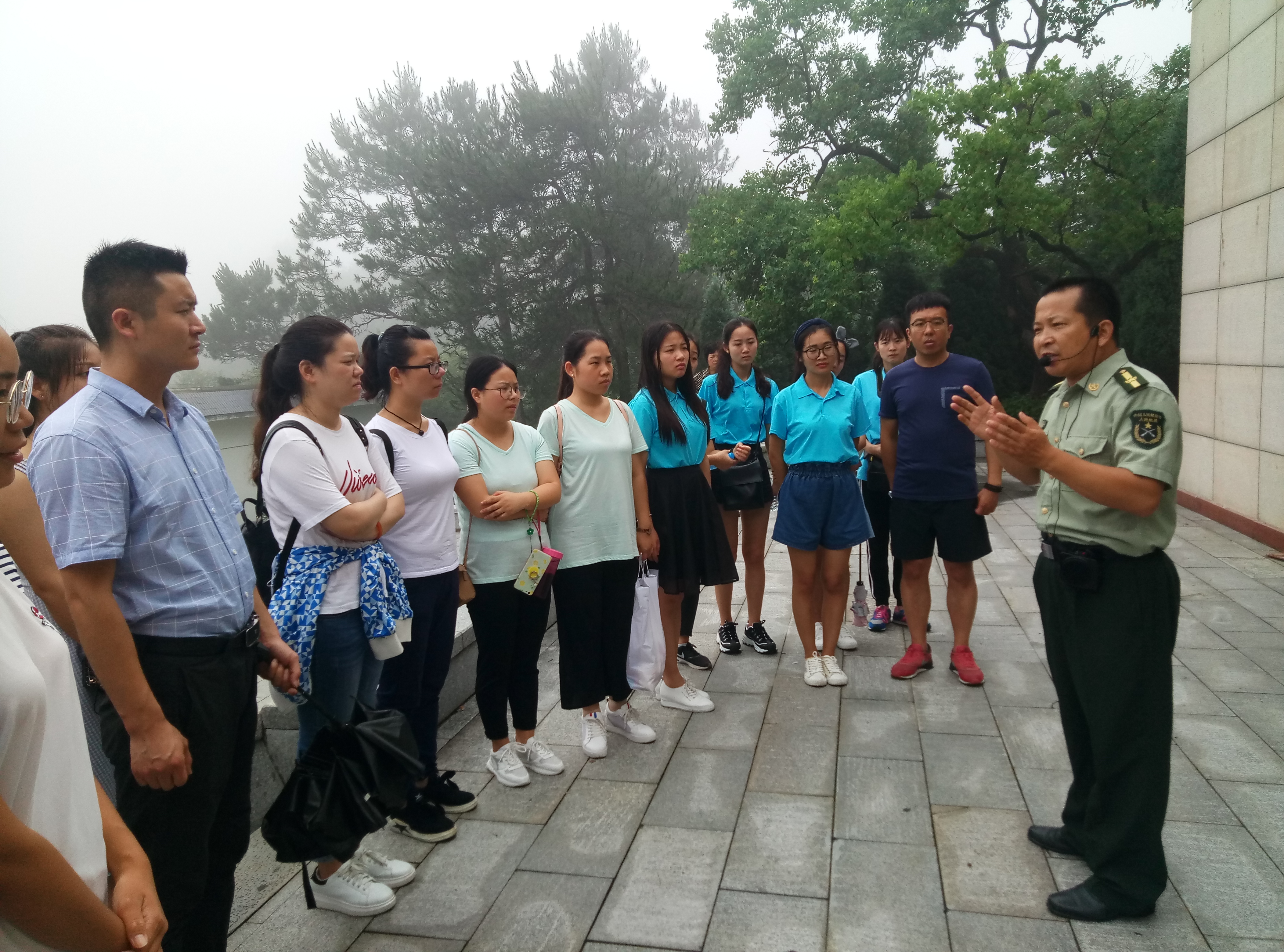 红四方面军将士纪念馆原称郑维山将军故里,主要是介绍了红四方面军的诞生、发展和演变过程。景区主任兼泗店乡武装部长周远明老师热情地为同学们讲解了红四方面军的发展历史。他介绍说红四方面军组建于1931年11月,从黄麻、商南、六霍起义,到粉碎敌人的多次“会剿”,逐渐由一支仅有几十人的游击队发展成为8万余人的正规红军,成为我党缔造的中国工农红军的主力部队之一。2000年,按照出生于泗店乡的郑维山将军遗嘱,将其骨灰撒在山上巨石周围,因此该地又称为郑维山将军故里。