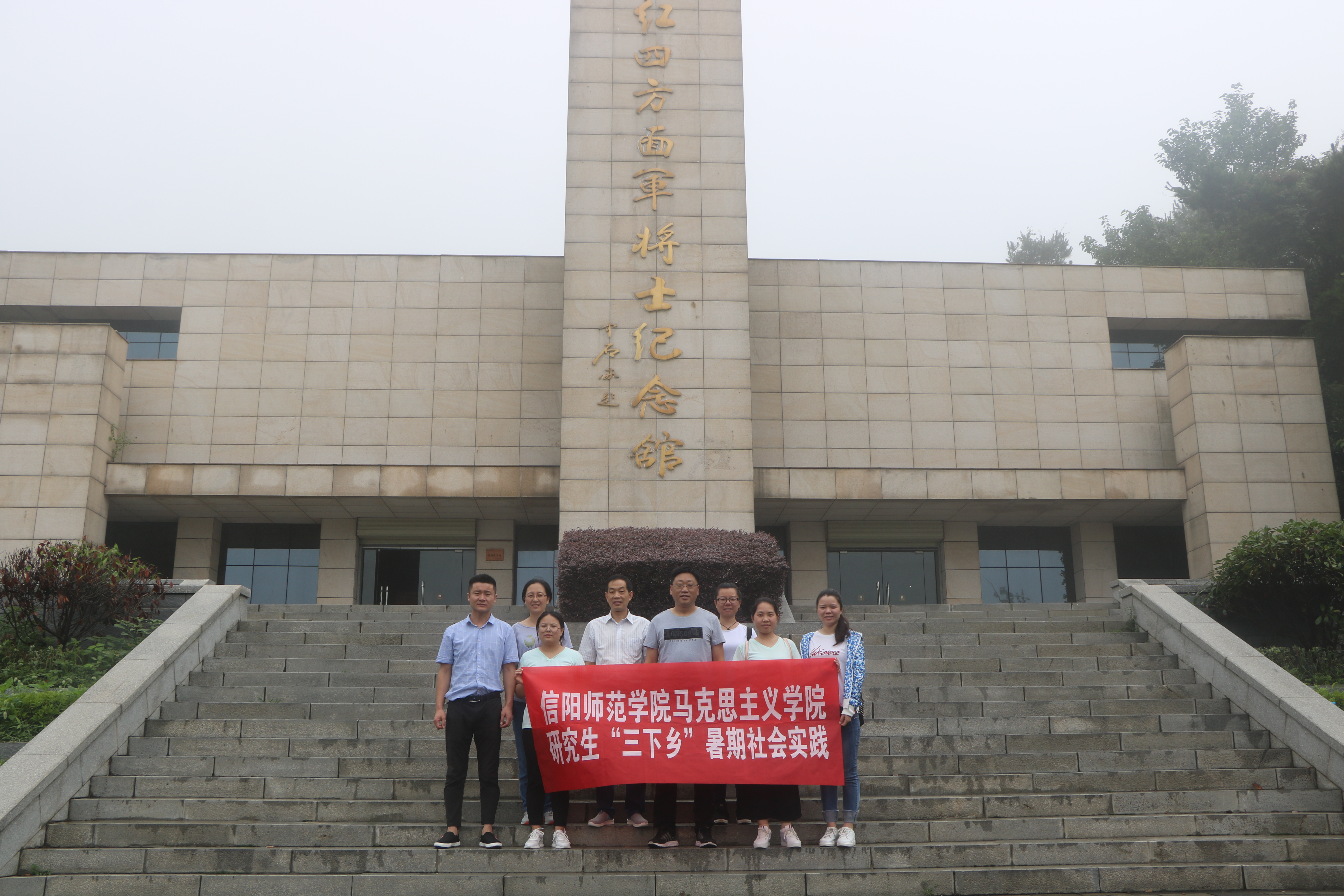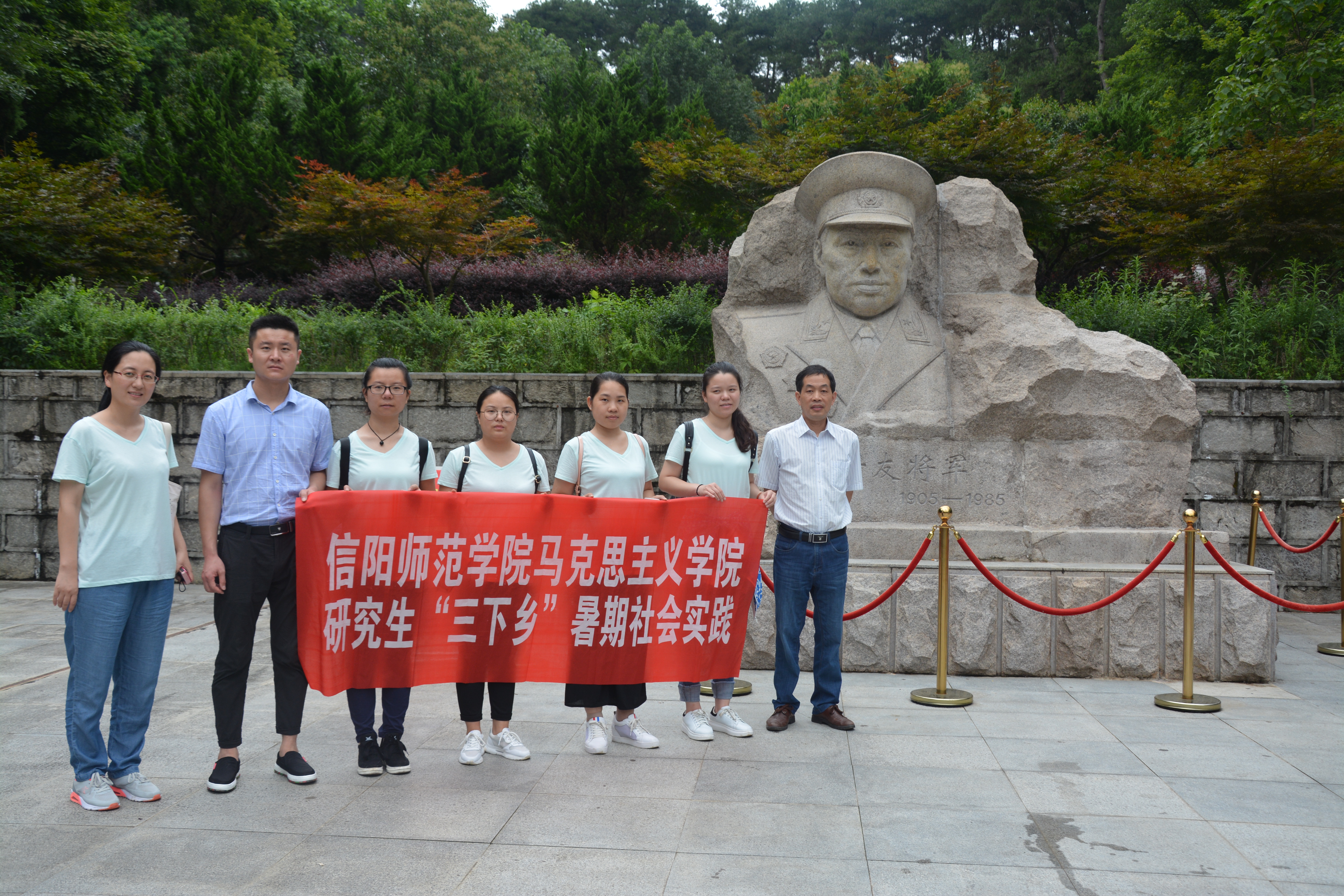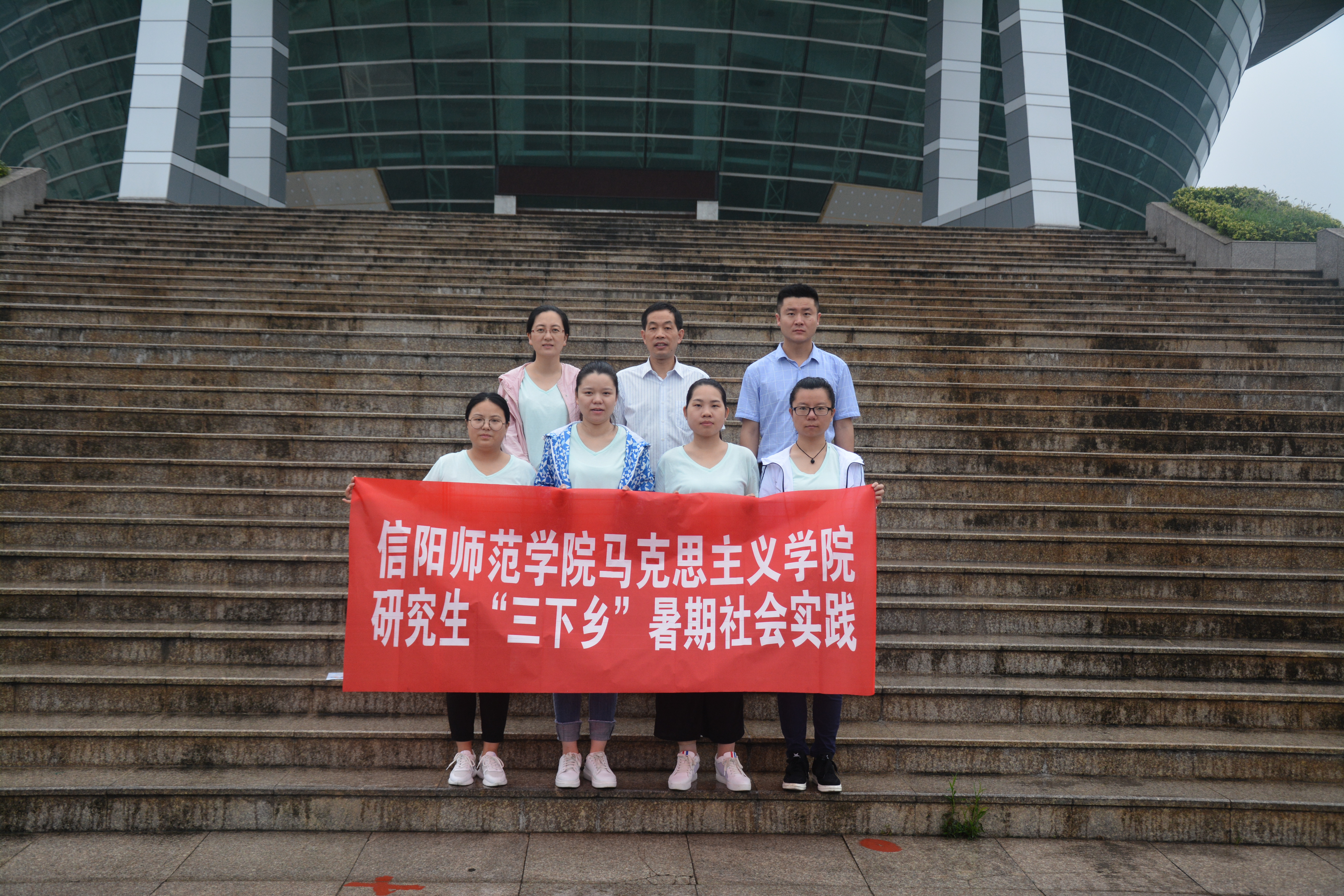公司研究生“三下乡”暑期社会实践小分队在学校体育馆前的出征合影