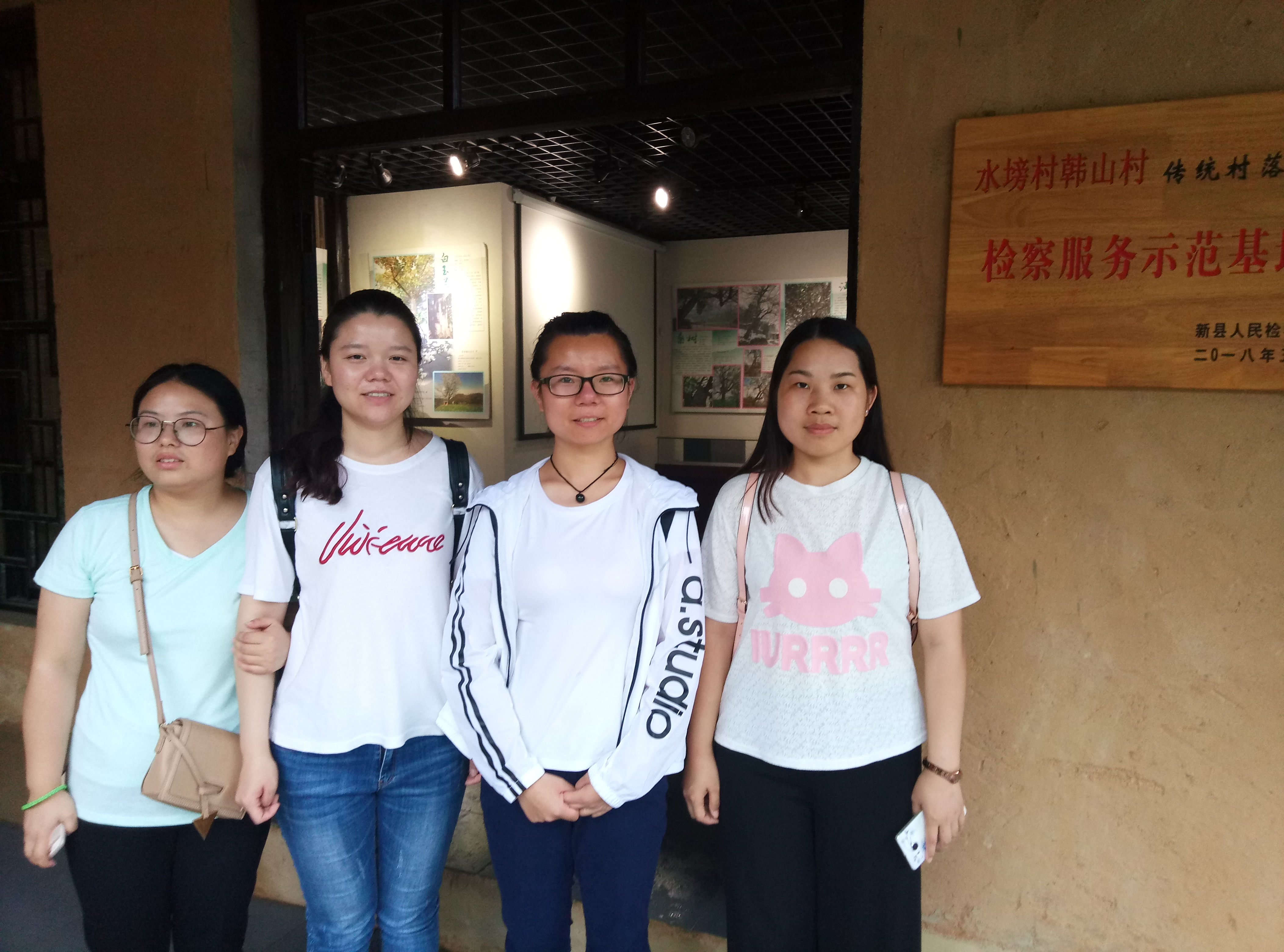 韩山村是国家级传统村落,距今有800年历史。瓢泼大雨中,同学们踩着泥泞的山路慢慢往上走,不一会就进入到了韩山村,映入眼帘的是郁郁葱葱、叫不上名儿的绿树,往前走,在村口迎接我们的是新县树王博物馆。负责看馆的韩大爷非常热情地招呼我们避雨。韩大爷说韩山村村里村外现有古树古木有149株,古树资源很丰富。国家建起了树王博物馆后,很多人都来参观,也带动了村里的经济,他希望村里的生活越来越好。