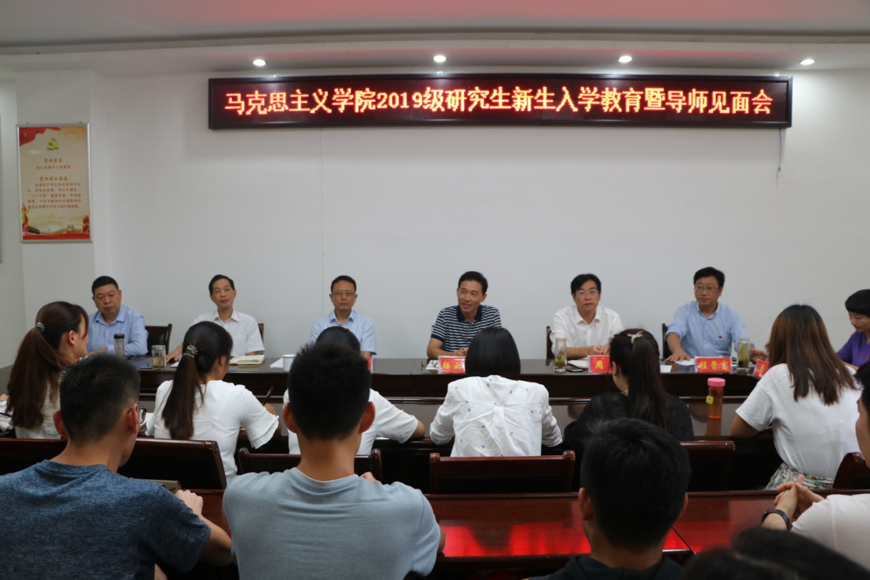会议伊始,杨云善代表学院全体师生对2019级硕士研究生的到来表示欢迎,并从团队建设、科研成果、教学工作等方面,介绍了学院近年来取得的成绩。同时他也对新生提出四点希望:一是要完善品德、健全人格,努力培养各种优秀品质;二是要勤奋钻研、乐学善思,对马克思主义理论经典著作和习近平新时代中国特色社会主义思想进行深入学习,做到学思结合、知行合一;三是要志存高远、敢于拼搏,立志成才,踏踏实实地做好每一件小事;四是要树立终身学习、勇于实践、勤于反思的态度。