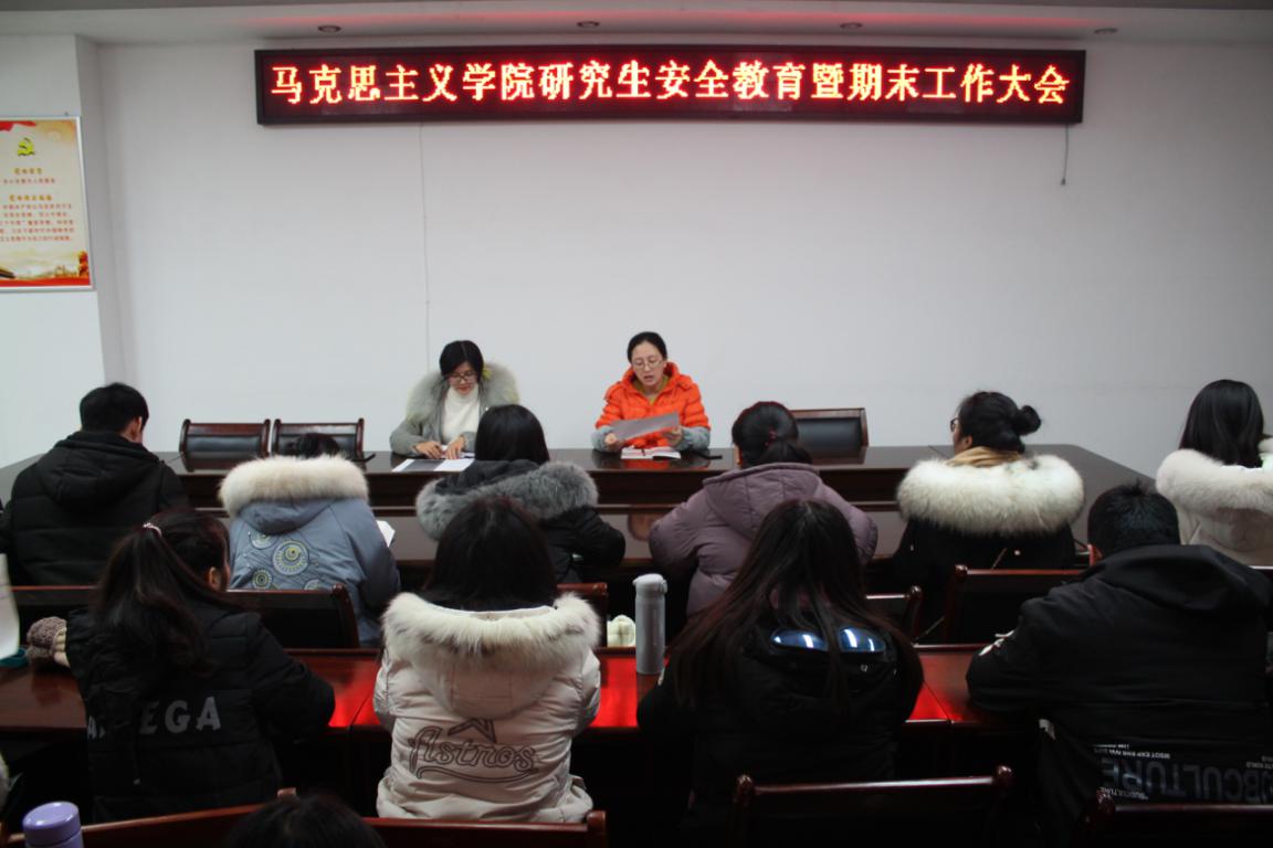 2019年12月25日,为加强研究生安全防范意识,自觉遵守校规校纪考纪,公司在323会议室召开关于安全教育以及期末工作的会议,研究生教学秘书卢云晓和班主任郑晨霞及全体研究生参加了此次会议。