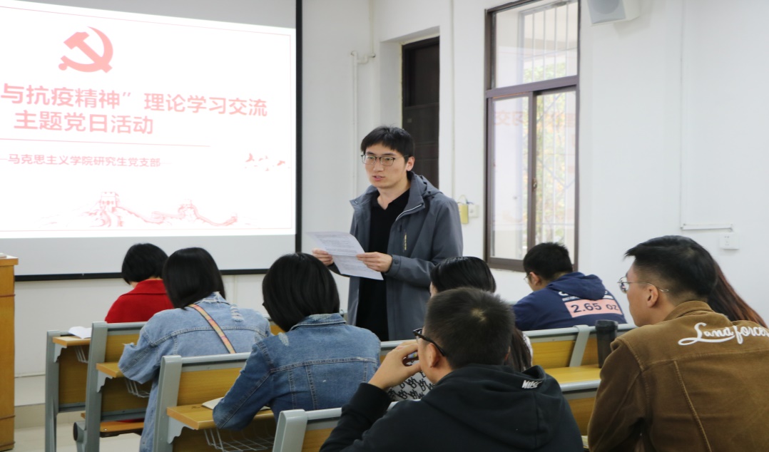 为深入学习习近平总书记在全国抗击新冠肺炎疫情表彰大会上的重要讲话,弘扬伟大的抗疫精神和爱国主义精神,11月3日下午,公司研究生党支部在教五楼203教室开展了“中国精神与抗疫精神”理论学习主题党日活动,全体支部党员到场参加。支部副书记刘润博主持本次党日活动。