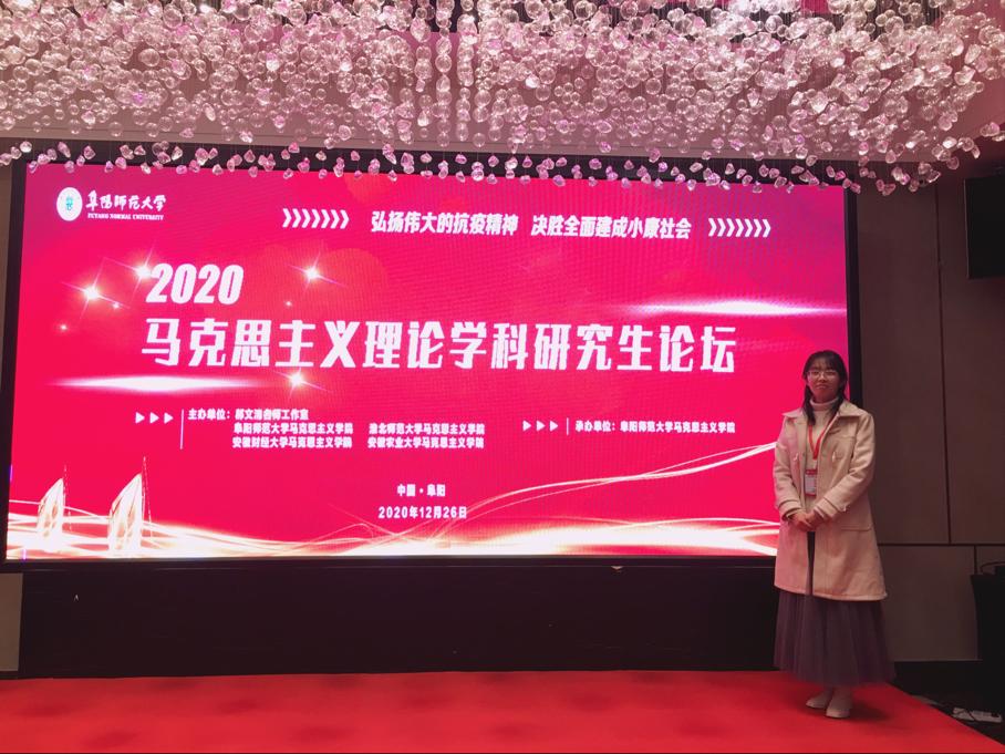 12月26日,“弘扬伟大的抗疫精神 决胜全面建成小康社会”马克思主义理论学科研究生论坛(2020)在阜阳师范大学隆重召开。公司2019级马克思主义发展史专业研究生刘润博,作为唯一学院类的高校研究生代表应邀参会,其提交《习近平“以人民为中心”思想话语创新的特点分析》论文荣获三等奖。