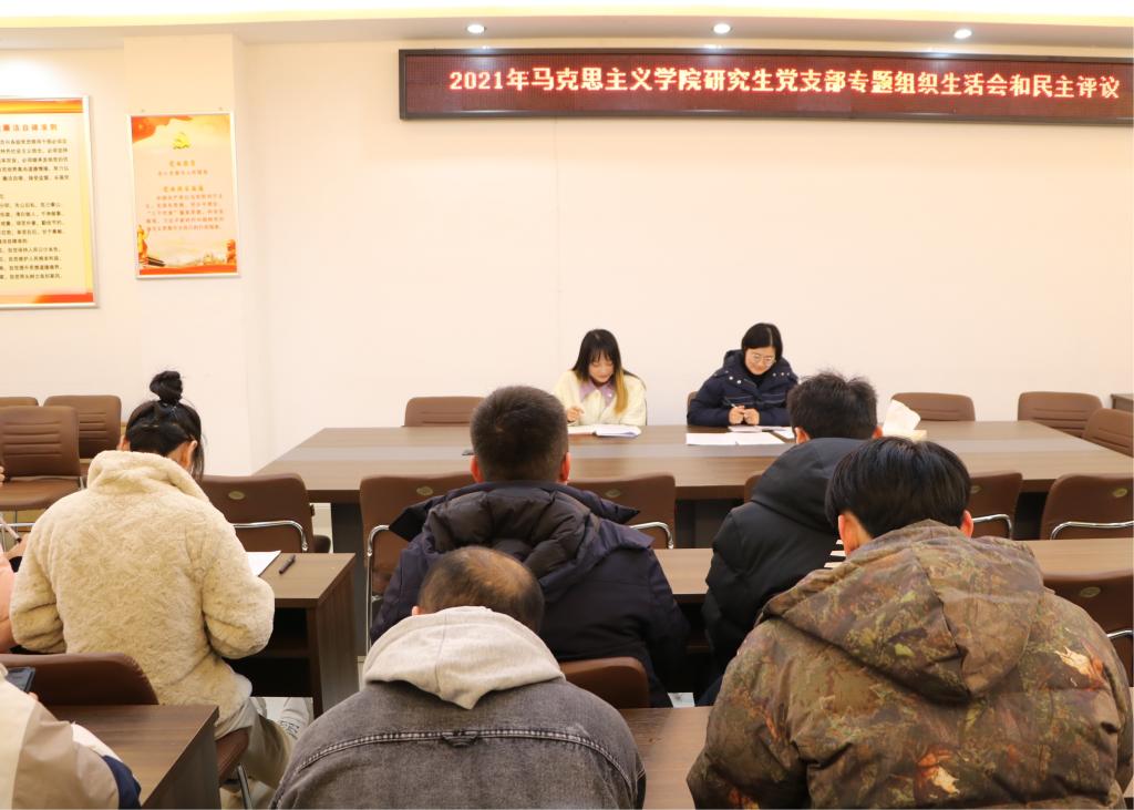 12月20日下午,公司研究生党支部在社科楼323会议室召开2021年度专题组织生活会和民主评议会,会议由支部书记郑晨霞主持。