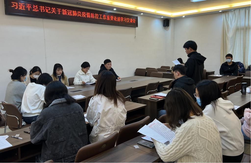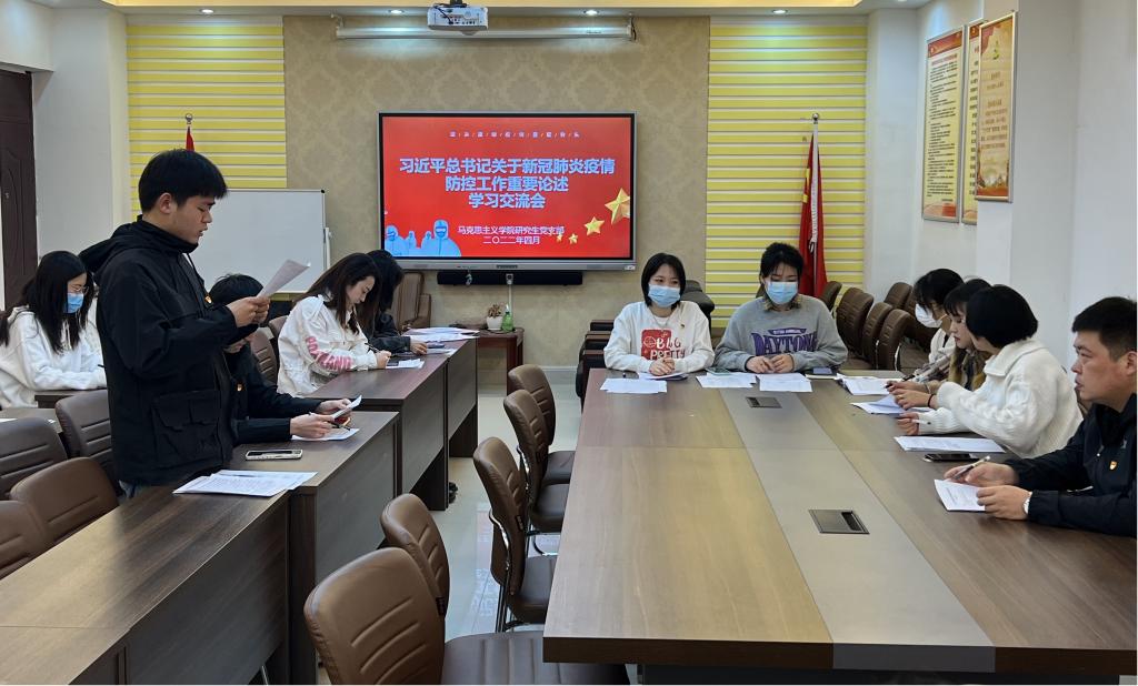 为深入学习贯彻习近平总书记关于做好疫情防控工作的重要讲话及指示精神,帮助公司研究生党员增强“四个意识”、坚定“四个自信”、做到“两个维护,4月2日下午,公司研究生党支部于社科楼323会议室开展集体学习交流会,会议由支部书记郑晨霞主持。