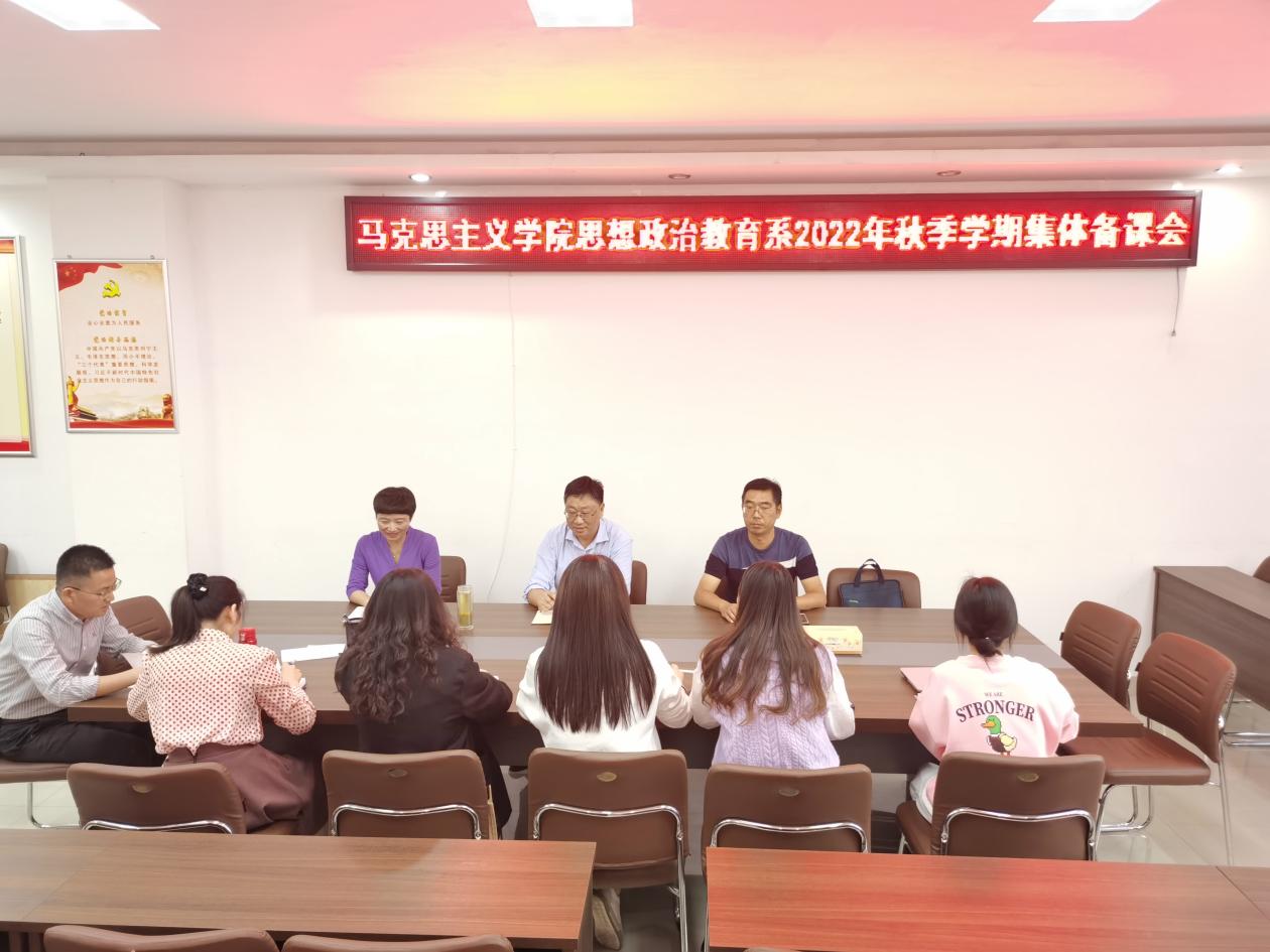 9月23日下午,思想政治教育系在社科楼323会议室召开集体备课会,2026年世界杯官网副经理程晋富、李蕊及思政系全体教师参加了会议,会议由思政系主任王建礼主持。