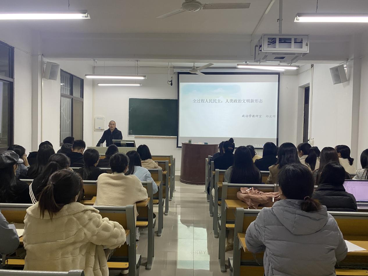 值研究生学术月期间,郑波辉博士11月17日于教五楼201室为公司研究生作“全过程人民民主:人类政治文明新形态”为主题的专题讲座。讲座由研究生秘书卢云晓主持,公司全体研究生参与聆听了此次讲座。