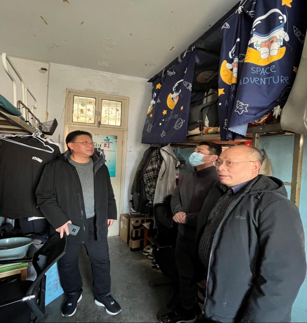 每到一间宿舍,老师们都与员工进行面对面的亲切交流,为同学们送去关怀与温暖,了解员工日常生活状况和学习情况,并对员工宿舍安全、卫生、设施、文化建设等方面情况逐一进行检查。走访过程中,副经理程晋富指出,宿舍是大学校园里一个微小的“社会单元”,建设什么样的宿舍文化,对于研究生的个人发展至关重要。一是要强化思想政治引领,以寝室文化建设为抓手,建设学习型文明高地,让大学寝室成为员工提高政治觉悟、树立远大理想、坚定崇高信念的学习阵地,确保寝室文化育人的功效落地落实;二是要建设积极向上的寝室文化,培育和弘扬社会主义核心价值观,做到知感恩、讲诚信、行礼仪,形成好学、乐学、善思、修身的学习方式、生活方式和文明习惯;三是要发挥主人翁精神,凝聚寝室集体智慧,把约束要求内化为行为自觉,把宿舍建设成“讲学习,讲政治,讲正气,讲团结,讲文明,讲纪律,讲奉献,讲成才”的文明之家。