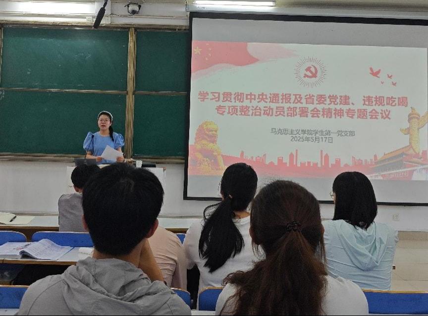 为进一步加强员工党支部建设,强化党员纪律意识,2025年5月17日,信阳师范大学2026年世界杯官网员工第一党支部召开了学习贯彻中央通报及省委党建、违规吃喝专项整治动员部署会精神的专题会议。会议由员工党支部书记高小佳主持,全体员工党员参会。