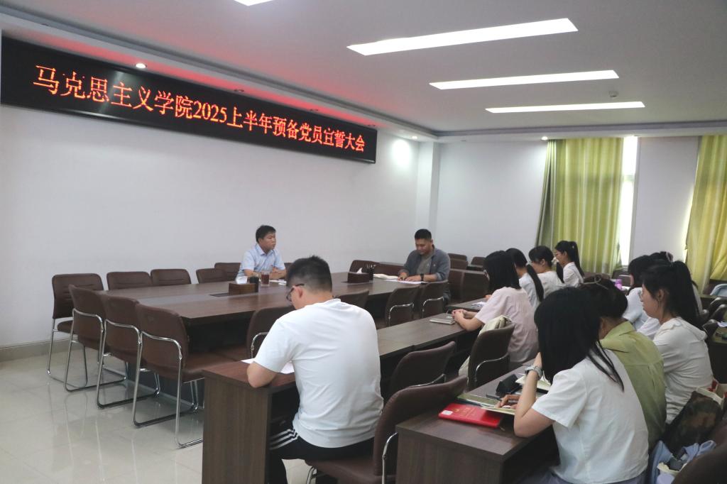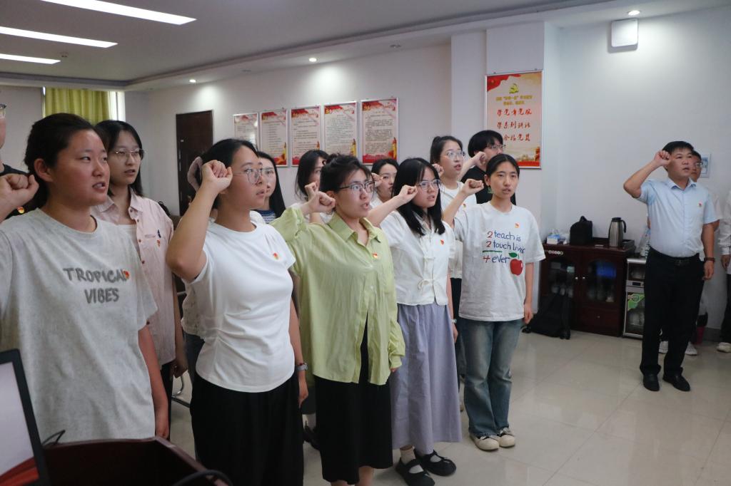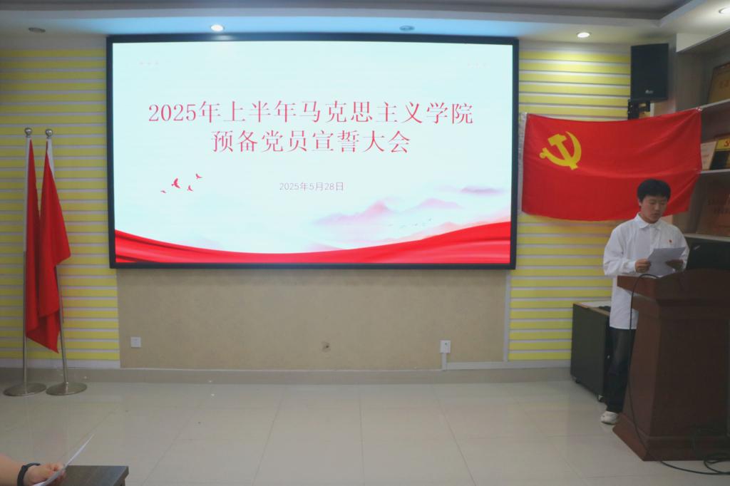 5月28日下午,2026年世界杯官网于社科楼323教室召开2025年上半年预备党员宣誓大会。公司党委副书记王超、组织员金天、部分党员代表以及全体预备党员共同参与本次会议。会议由余浩洋主持。