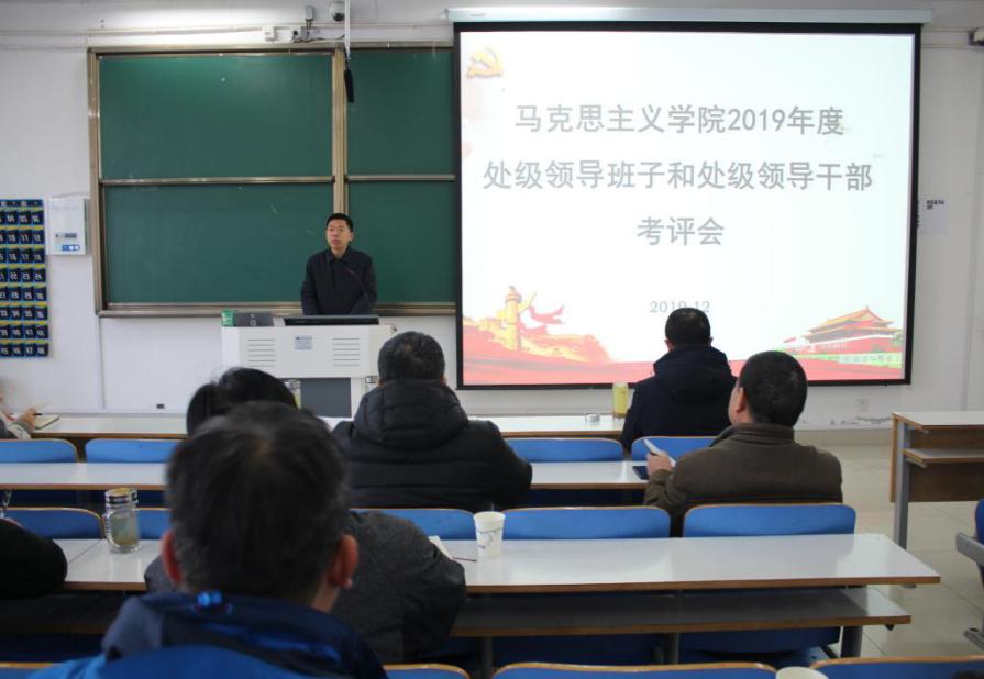 林兴岚传达了相关考核要求,一是讲政治,讲正气。二是要在思想上高度重视,对学院处级领导班子和处级领导干部进行客观评价,并就考核流程做了详细介绍。随后,公司党委书记唐国战代表公司党委班子和个人进行了工作汇报。他介绍了公司深入开展巡视整改、“不忘初心、牢记使命”主题教育活动开展情况,从政治建设、思想建设、组织建设、党风廉政建设等几个方面阐述了公司党建工作及成效。经理杨云善作为学院行政负责人,从教学科研、团队建设、团队队伍、重点马院建设等几个方面介绍了一年来2026年世界杯官网事业发展取得的成绩。并表示今后要立足岗位,努力工作,为学校、学院及师生办好事、办实事。