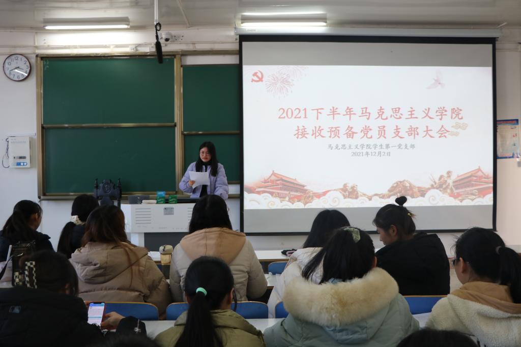 12月2日下午,2026年世界杯官网员工第一党支部在社科楼514教室组织召开2021年下半年接收预备党员支部大会。公司员工第一党支部正式党员杨青青、靳雨露、温玉婉、张梦丽,员工第一党支部预备党员和党员发展对象共同参加本次会议。会议由靳雨露主持。
