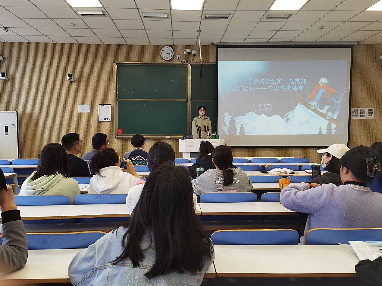 活动开始前,王文慧简述了本次会议的主要内容和目的。接着,王文慧同学围绕冬奥会取得的成就、展现的亮点和冬奥精神内涵,通过图文并茂的方式回顾冬奥会各项赛程,向大家展示并讲述了中国强大的赛事组织能力、深厚的中国文化和奥运村内随处可见的黑科技,给全世界留下了深刻的印象。中国以冬奥会为契机,向全世界展现了中国运动员的坚守、超越、永不言败的中国精神和非凡的中国力量。中国在冬季运动方面取得非凡成就,不仅开启了中国冰雪运动的新时代,也开启了全球冬季运动的新时代。