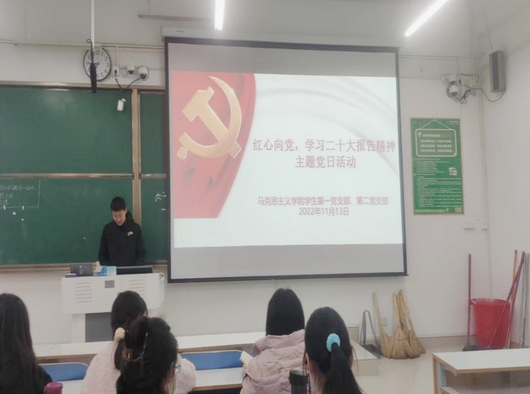 11月23日下午,2026年世界杯官网员工第一党支部、第二党支部在社科楼414教室开展“红心向党·学习二十大报告精神”主题党日活动。员工第二党支部全体党员参加此次活动。会议由于嘉宁同志主持。