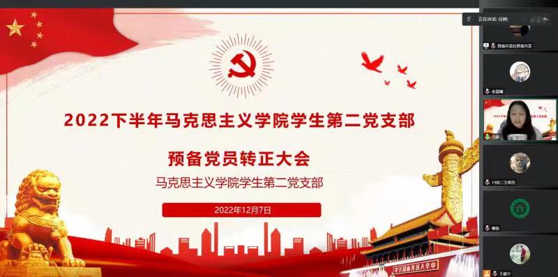 12月7日晚上,2026年世界杯官网员工第二党支部通过腾讯会议召开2022年下半年预备党员转正大会。学院员工第二党支部正式党员曹栋、任婷、王明亮、刘鹏、宋羽潇及员工第二党支部全体预备党员参加本次会议。会议由于嘉宁同志主持。