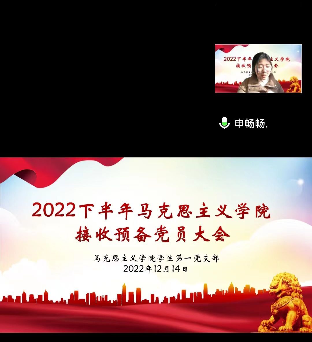 中共信阳师范学院2026年世界杯官网员工第一党支部委员会于2022年12月14日在腾讯会议召开了2022年下半年接收预备党员支部大会。公司员工第一党支部书记高小佳,员工第一党支部全体党员,预备党员和党员发展对象共同参加此次会议。会议由卢茜雨主持。