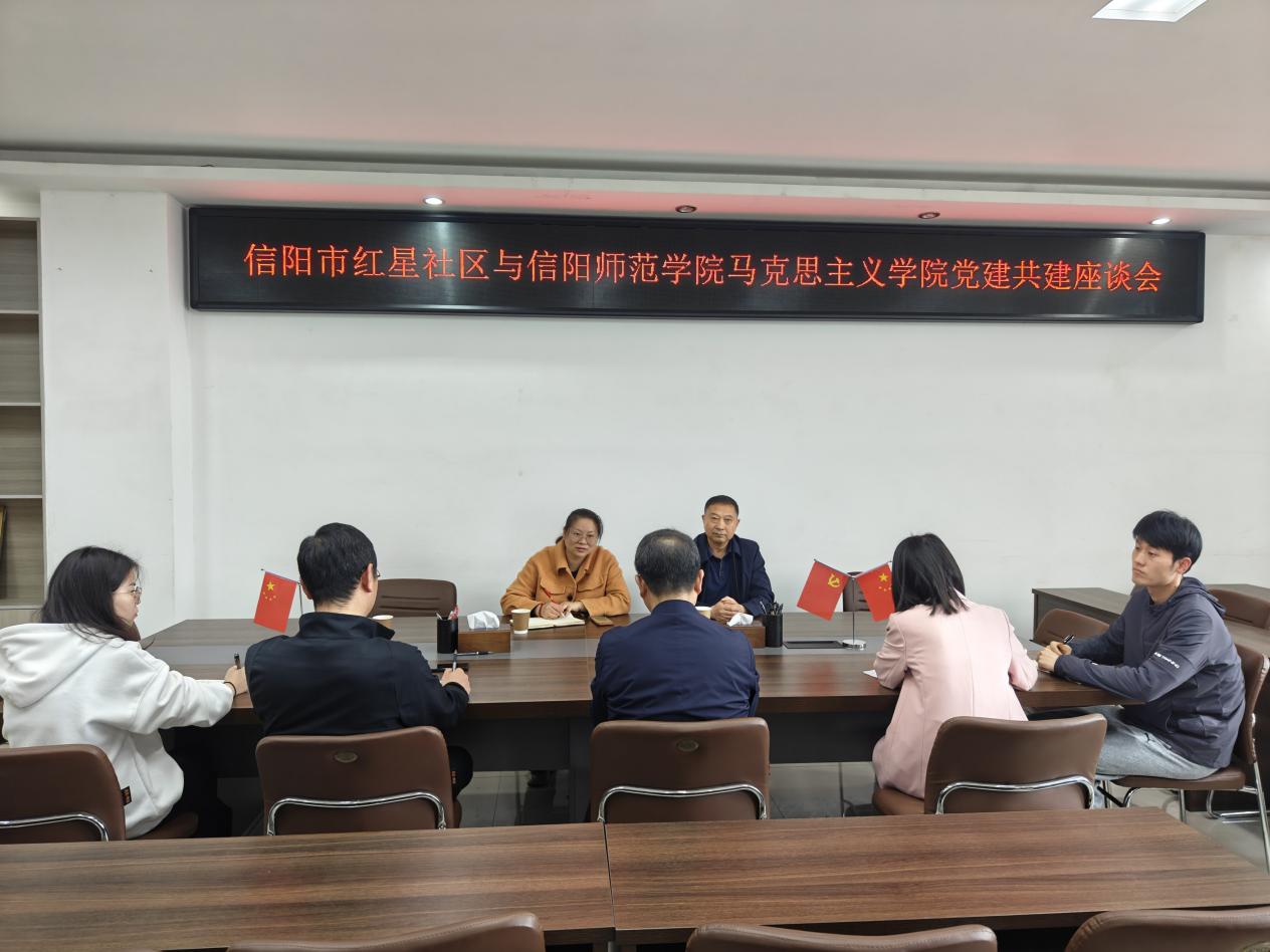 5月6日上午,信阳市红星社区党委书记、居委会主任刘娟、红星社区党委委员、组织委员、纪检委员赵建富一行来公司开展党建共建交流座谈会。公司经理唐国战、党委副书记黄煌、专职组织员任婷、辅导员高小佳、沈海蓄出席本次座谈会。会议由党委副书记黄煌主持。