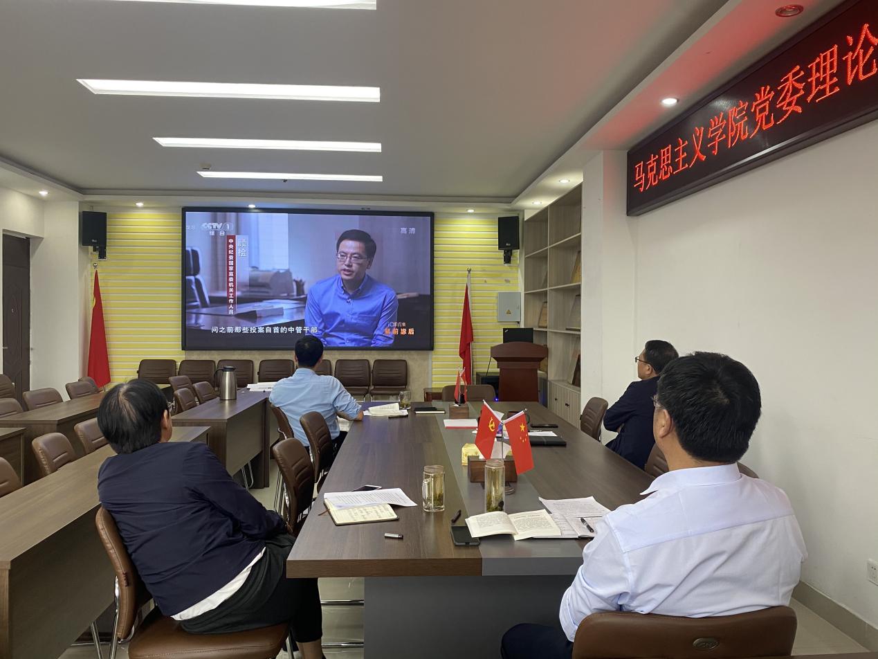 会上,学院班子成员逐字逐句学习习近平总书记重要论述,与会人员围绕本次学习内容作了交流发言。最后,学院班子成员集中观看反腐警示教育纪录片《零容忍》第三集。