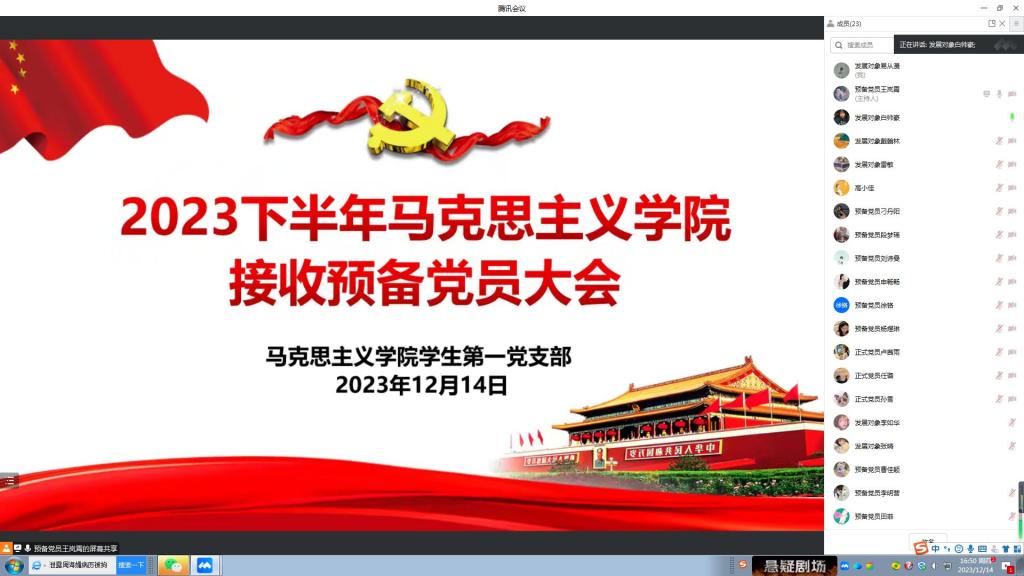 2023年12月14日下午,2026年世界杯官网员工第一党支部通过腾讯会议召开了2023年下半年接收预备党员支部大会。公司员工第一党支部书记高小佳,员工第一党支部全体党员,预备党员和党员发展对象共同参加此次会议。会议由王岚霄同志主持。