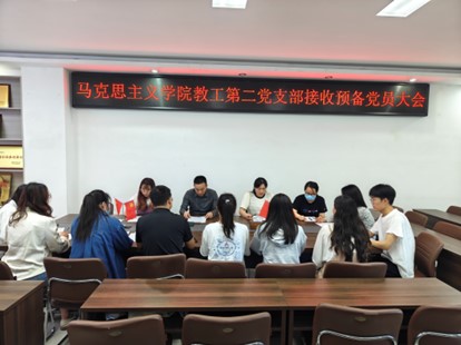 会议严格按照党组织接收预备党员的程序进行。首先,胡春湘老师清点到会人员,宣读党员发展对象名单。随后,孙文亮、王雨、周艳三名申请人依次宣读《入党志愿书》,汇报自己对党的认识、入党动机、本人履历、现实表现、家庭和主要社会关系情况,表达了加入中国共产党的决心。接着,入党介绍人王帆宇老师简要介绍新发展预备党员一年来的主要表现情况,并就是否同意其能否成为预备党员提出意见。随后,与会党员进行投票表决。经支部表决,一致同意接收孙文亮、王雨、周艳三名同志为中国共产党预备党员。最后,党支部书记王帆宇同志总结发言,他表示,所有正式党员和预备党员要时刻谨记入党誓词,时刻以身作则,处处严格要求自己,更好地发挥党员模范带头作用。