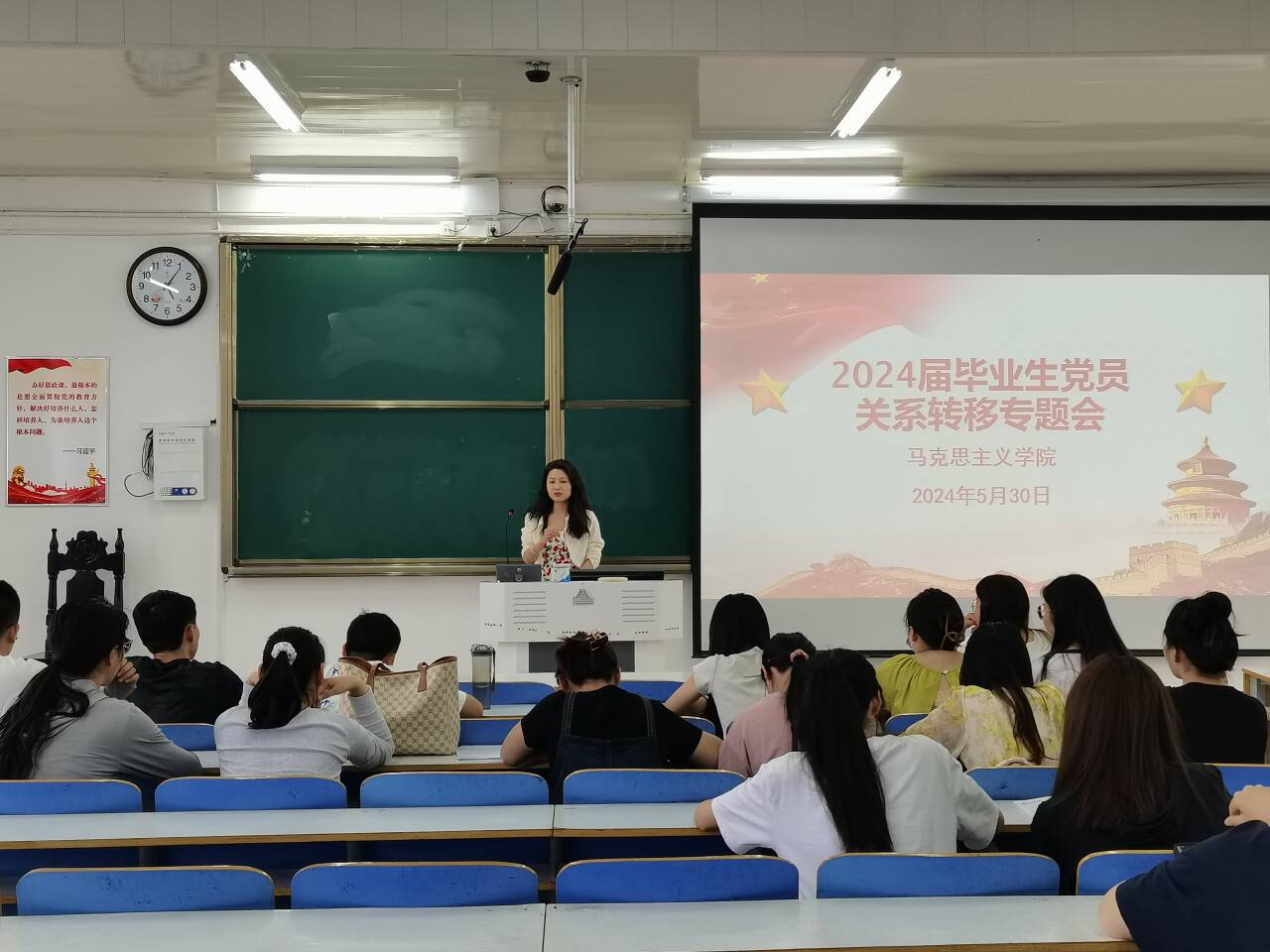 会上,刘玫森围绕毕业生党员组织关系转移主要流程、基本原则、转接办法等方面的内容进行了详细的讲解。其中,对党员组织关系转接去向地的规范名称、介绍信有效期等信息进行重点强调。随后,任婷就今年毕业生党员转接组关系的相关时间节点和具体安排进行了深刻解读,根据通知要求向全体毕业生党员说明了离校后转移组织的关系转接程序和注意事项,并客观阐述了员工党员完成组织关系转接的重要意义。