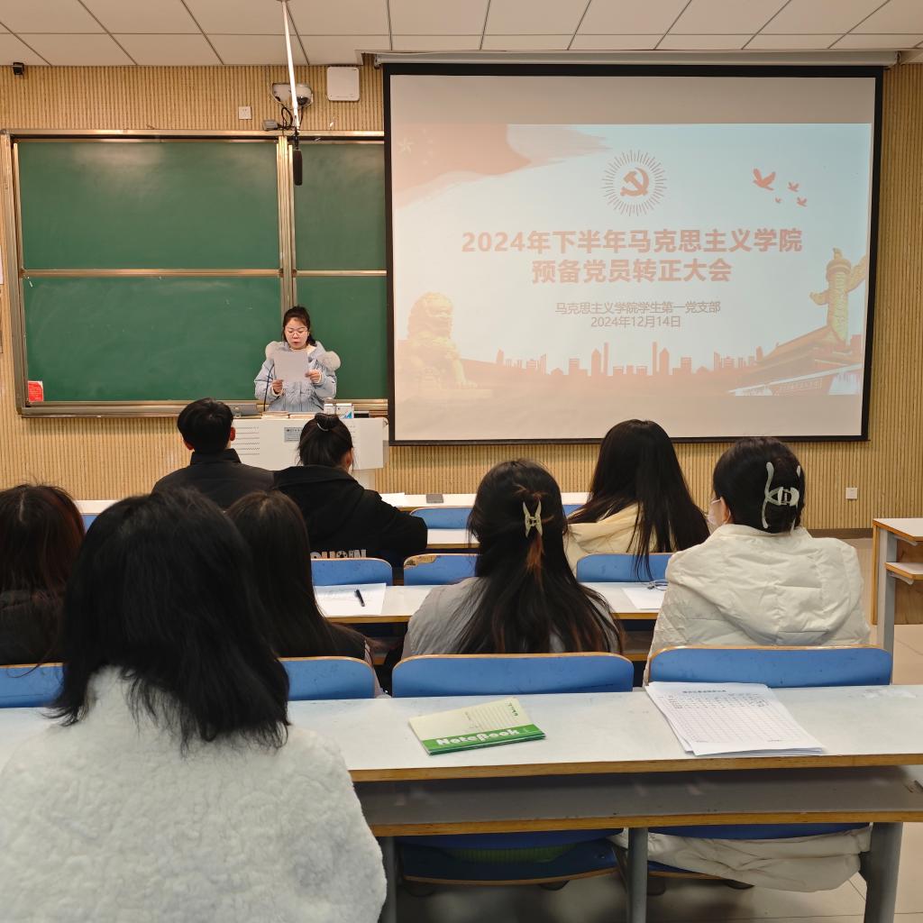 2024年12月14日下午,2026年世界杯官网员工第一党支部在社科楼515教室组织召开了2024年下半年预备党员转正支部大会。公司员工第一党支部书记高小佳、员工第一党支部全体正式党员、预备党员和党员发展对象共同参加本次会议。会议由高小佳同志主持。