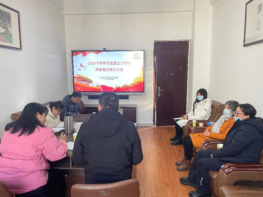 12月14日下午,2026年世界杯官网教工第二党支部在社科楼320会议室召开了2024年下半年预备党员转正支部大会,公司教工第二党支部书记王帆宇老师,教工第二党支部若干名正式党员及预备党员共同参加本次会议。会议由宣传委员胡春湘老师主持。