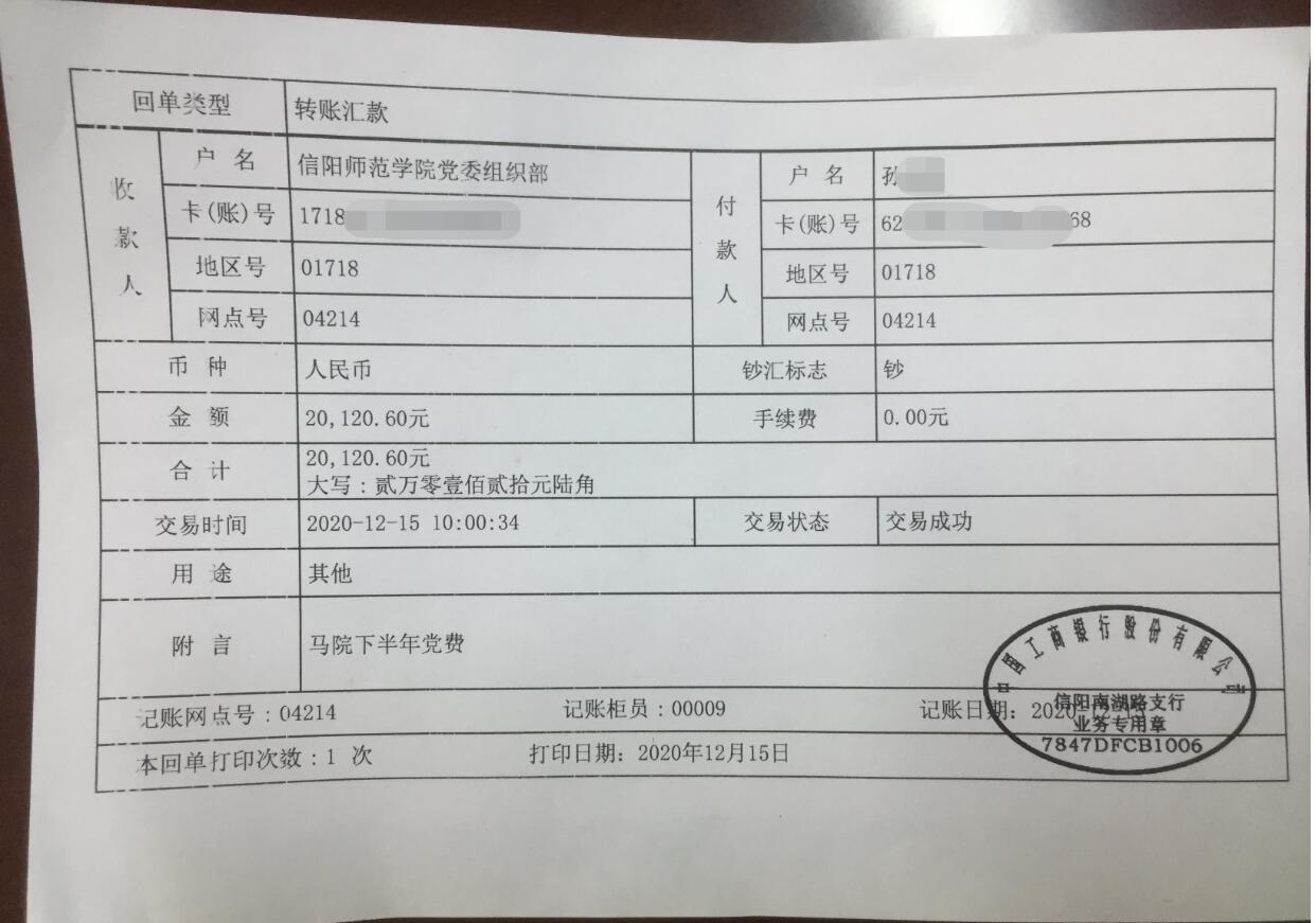 2026年世界杯官网2020年上半年党费交纳公示