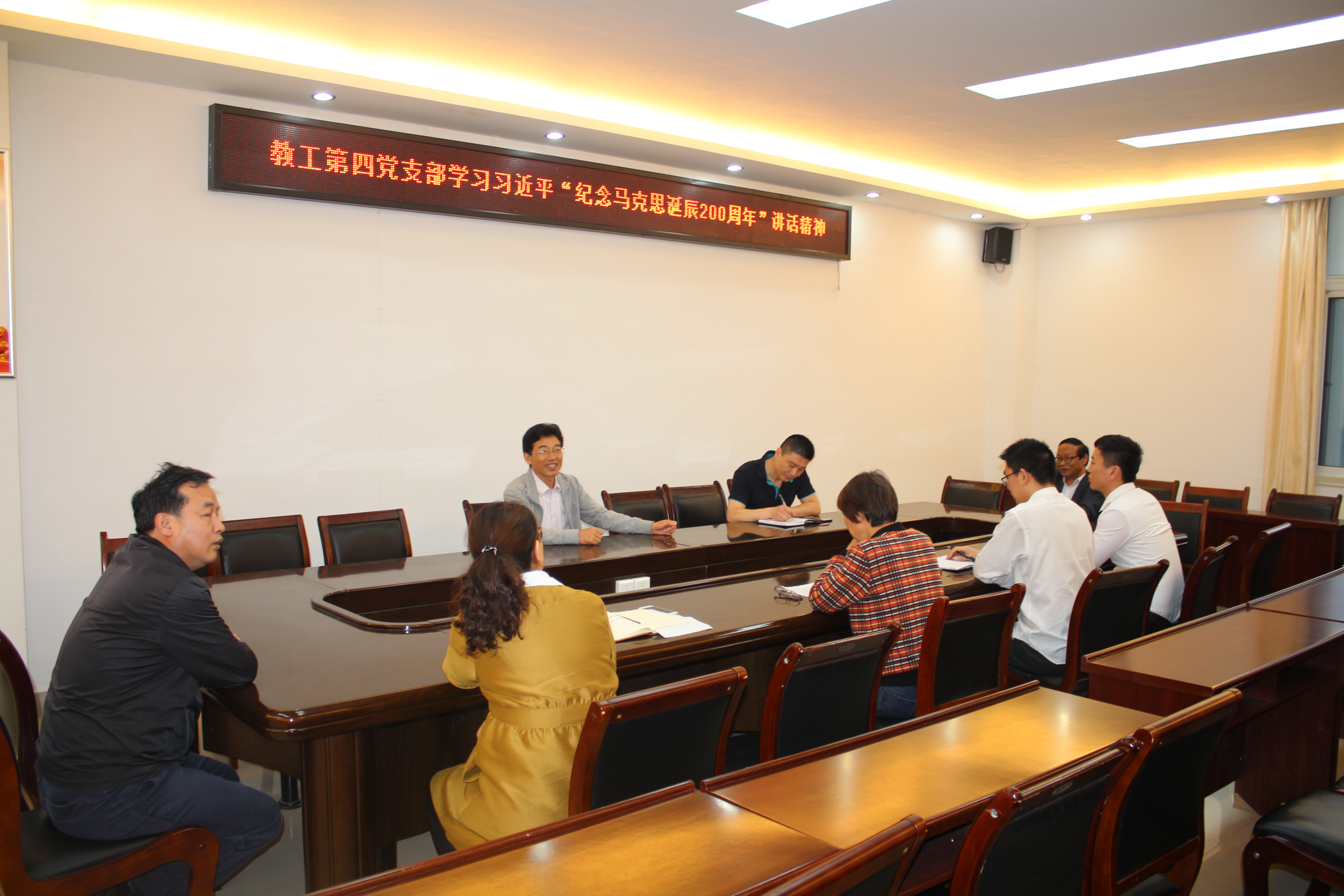 5月9日晚,教工第一党支部在支部书记王传富的带领下,在学院323会议室举行了习近平“纪念马克思诞辰200周年大会”讲话精神学习活动。公司党委书记唐国战作为支部成员参加,他从马克思的伟大理论贡献、学院教师要坚持学原著、悟原理,做到真学、真懂、真信、真用等方面进行了学习探讨,并提出,要深刻认识马克思主义理论在意识形态中的极端重要性和理论的科学性、真理性、预见性等特点,结合党的十九大精神,推动思想政治理论课“三进”工作,不仅要讲清、讲好、讲透、讲深,也要讲新,使全体师生不断增强 “四个意识”,坚定“四个自信”。