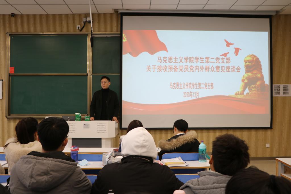 12月2日上午,2026年世界杯官网员工第二党支部关于接收预备党员党内外群众意见座谈会在社科楼515教室顺利召开。公司员工第二党支部书记曹栋,支部正式党员陶青青、曹梦真,党员发展对象以及党内外群众共同参加此次座谈会。会议由曹栋主持。