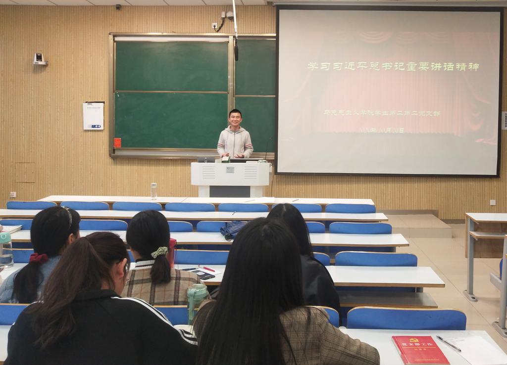 首先,艾子元指出本次会议的重要意义,并为同学们放映相关视频。接着,观看视频后,大家主动分享观看感悟、探讨学习内容。张晓艳提出,青年干部要想干事、能干事、干成事,做到坚定理想信念,提高政治敏锐性和政治鉴别力,坚持理论和实践相统一的原则,学习优良传统,学习大别山精神、井冈山精神等。随后,李梦茹进行发言,讲到青年干部要提高科学决策能力,提高群众服务能力,从群众中来到群众中去,把政治能力放在第一位,注重提高马克思主义理论水平。最后,在互动问答环节,同学们踊跃讨论,现场气氛活跃。经过集中学习和讨论后,艾子元对本次会议进行总结。