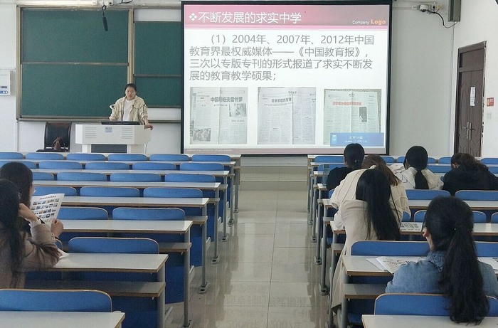 宣讲会上,胡文楠首先通过播放学校VCR,整体介绍了求实中学的基本情况。随后,她结合PPT详细介绍了该校的发展历程、教学环境、薪资待遇及招聘岗位等内容。她指出,求实中学拥有优秀的硬件设备和大量的优质生源,重视为师生营造良好的学习、生活、工作环境,关注教师专业素质的提升和培养,希望同学们踊跃参与招聘。最后,胡文楠与员工进行面对面交流,对在场同学提出的相关问题进行详细解答。不少同学表示会认真考虑,并积极准备参与该用人单位明日在公司春季双选会的招聘。