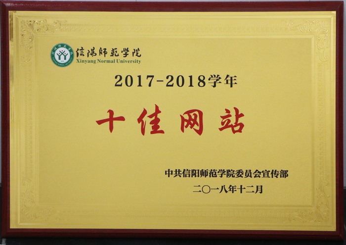 公司网站获信阳师范学院2017—2018学年“十佳网站”荣誉称号