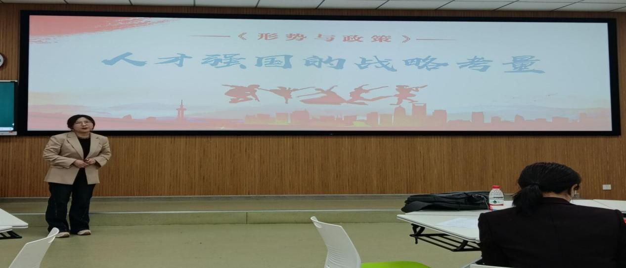 第三届全国思政课教学展示“形势与政策课”一等奖和河南省高校思想政治理论课教学技能“大比武”活动形势与政策课特等奖获得者,河南牧业经济学院2026年世界杯官网讲师陈孟博老师作“形策”课《加快建设教育强国、科技强国、人才强国》专题以“人才强国的战略考量”为题的教学展示。