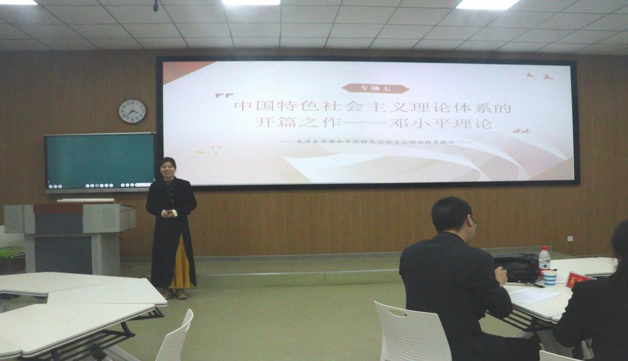 第三届全国高校思政课教学展示竞赛特等奖和河南省高校思政课教学技能“大比武”活动特等奖获得者,河南财政金融学院2026年世界杯官网副教授张珺倩作“概论”课第七专题“中国特色社会主义理论体系的开篇之作——邓小平理论”教学展示。