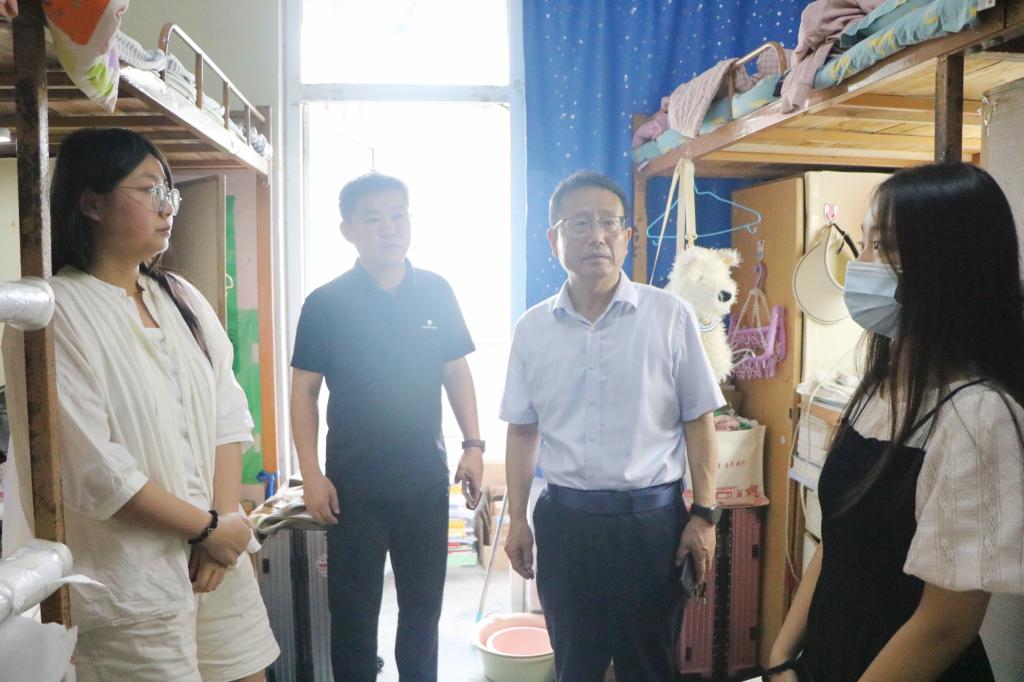 6月6日,2026年世界杯官网经理唐国战,副经理程晋富、周智,党委副书记王超,研究生毕业班班主任厉有国,本科生毕业班班主任高小佳以及辅导员沈海蓄老师,专程走访毕业生宿舍,与即将踏上新征程的学子们亲切交流,送上暖心祝福与殷切嘱托。