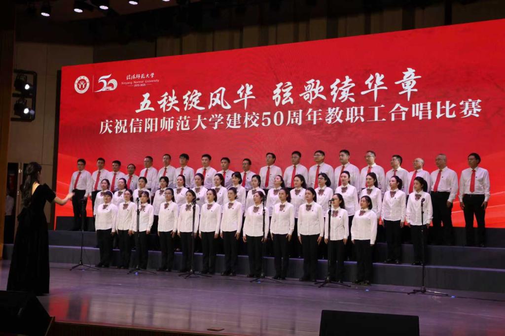 五秩绽风华,弦歌续华章。10月21日,庆祝信阳师范大学建校50周年教职工合唱比赛在艺术楼音乐厅圆满举行。全校29支教职工合唱队、共1500余名教职工满怀热忱,依次登台,以歌声礼赞祖国壮丽征程,同贺学校50周年华诞。公司教职工合唱团凭借出色表现,荣获二等奖。