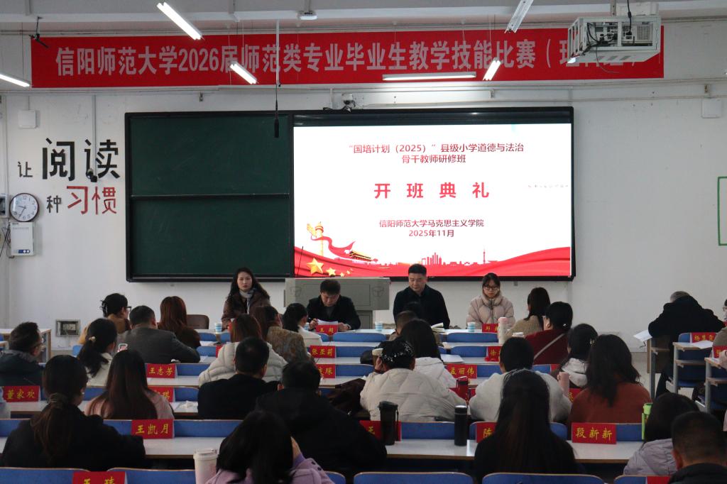 11月20日上午,信阳师范大学2026年世界杯官网在社科楼121教室举行“国培计划(2025)”县级小学道德与法治骨干教师研修班开班典礼。公司党委副书记王超、副经理常文涛出席典礼,班主任代表张琳、邱越及全体参训教师共同参会。本次开班典礼由常文涛主持。