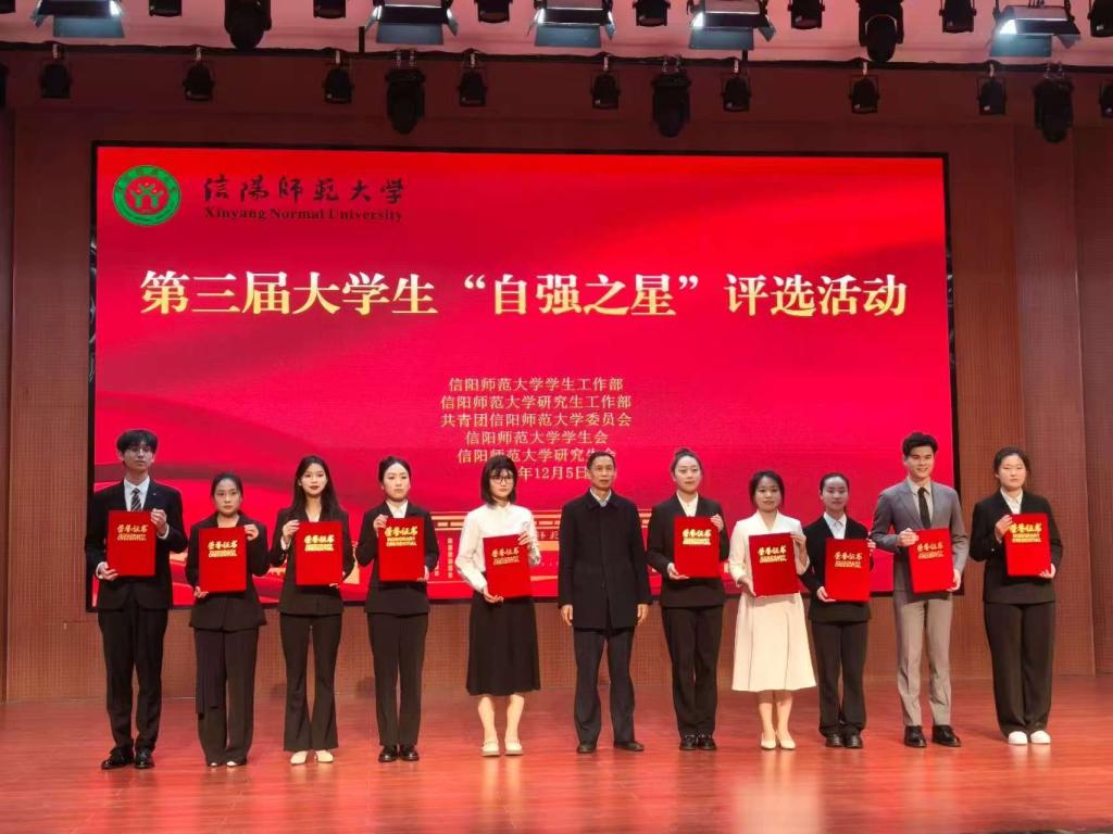 本次评选活动经个人申请、学院(书院)初赛、校级初审、线上线下展示等多环节比拼,决赛现场候选人结合课件分享自身在成长路上迎难而上、逐梦前行的自强故事,深深打动在场师生。经网络投票和现场综合评审,公司2023级思想政治教育1班员工张卓凭借优异表现脱颖而出,荣获信阳师范大学第三届老员工“自强之星”称号。作为中共预备党员,张卓在校期间始终以自强品格面对学业与生活挑战,不仅学业成绩名列前茅、斩获多项荣誉,还积极投身红色宣讲、志愿服务等实践活动,累计获得校院两级七十余项荣誉,用行动彰显了新时代青年的责任与担当。