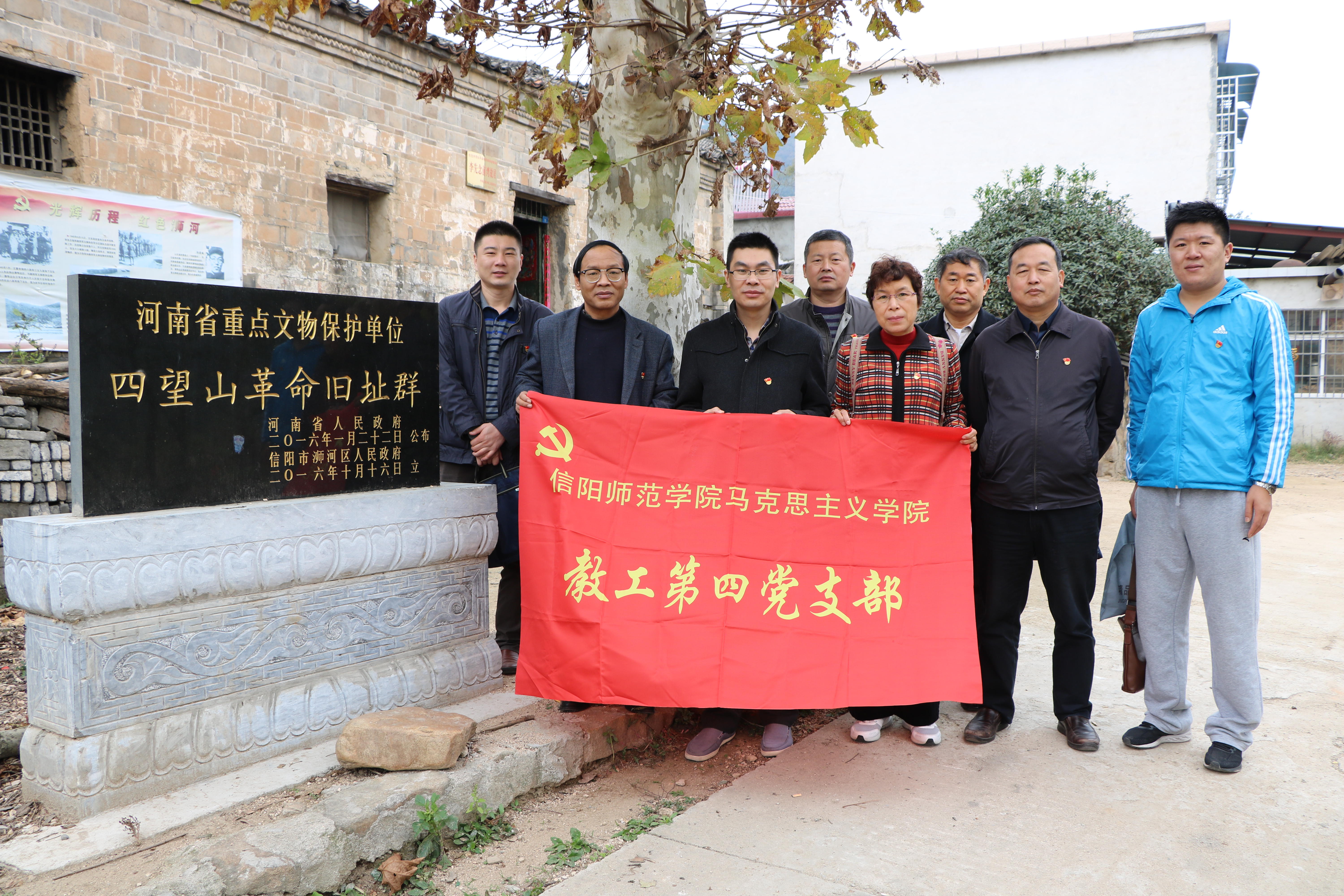 教工第四党支部成员抵达四望山红色教育基地后,首先重温了入党誓词。然后,参观了李先念居住旧址、老君洞(李先念等人办公旧址)、新四军第五师指挥所旧址、无名烈士墓等革命旧址。大家在座谈交流时,围绕艰难的革命岁月中涌现的可贵精神开展研讨、交流。大家纷纷表示,要严格遵守党章,坚定政治方向和政治立场,严格党内政治生活,锤炼党性,在各项工作中切实起到模范带头作用。参观期间,党支部成员还深入当地村民家中,访民情,问基层,了解了新农村建设情况。