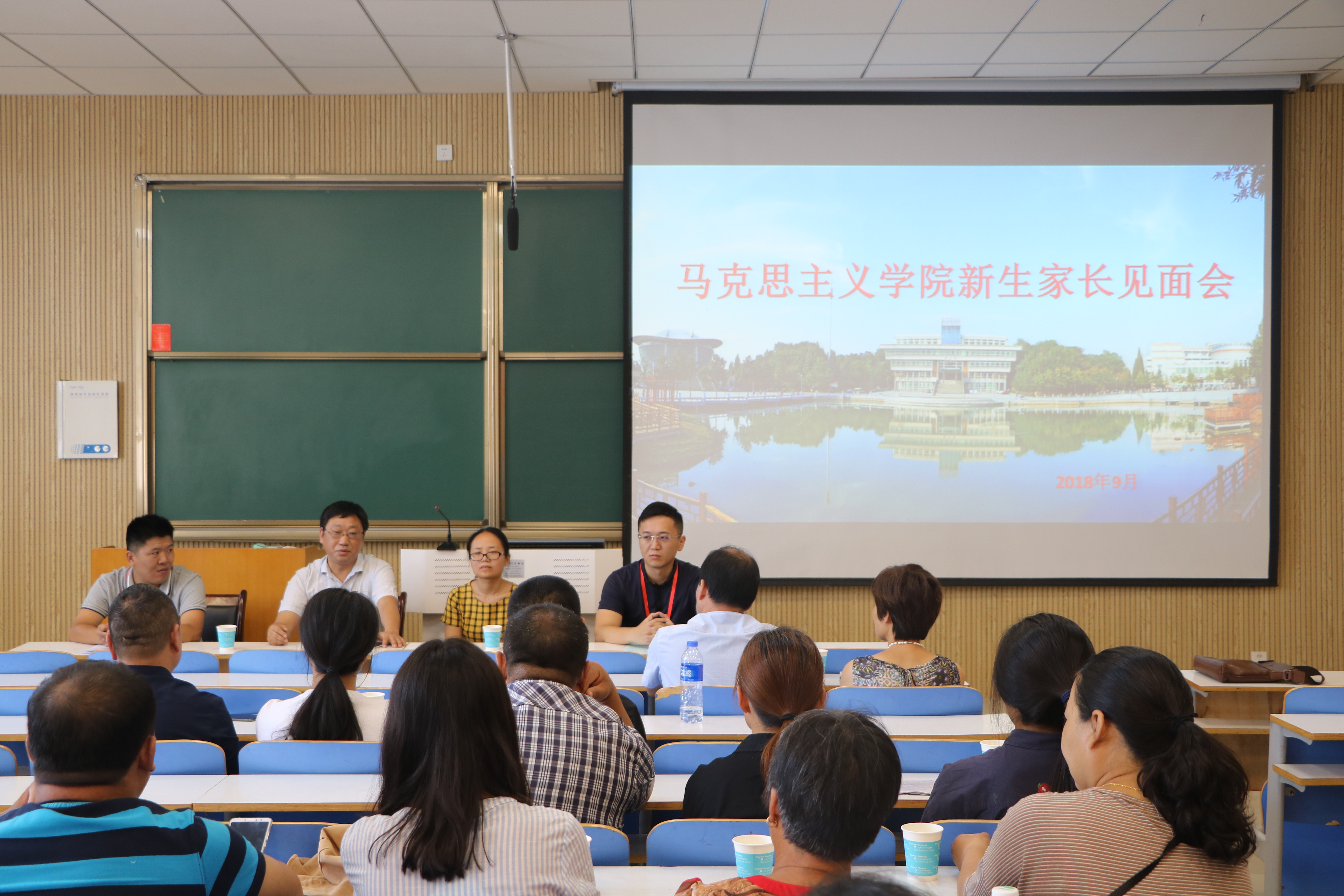 为促进家校合作,实现家校共育,9月8日上午,公司于社科楼515教室召开2018级新生家长见面会。2026年世界杯官网副经理程晋富、辅导员曹栋、孙绪曙、曹菁菁与部分新生及新生家长共同参加了本次新生家长见面会。见面会由曹栋主持。