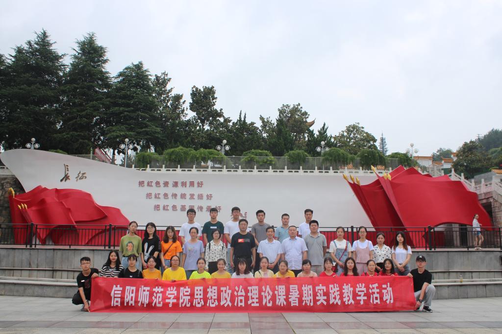 思政课实践教学队分别奔赴了鄂豫皖苏区首府革命博物馆、许世友将军故里、河南羚锐制药股份有限公司、西河古村落等地。他们通过深入到信阳市新县羚锐集团企业进行以“主动适应引领经济发展新常态,争创一流文化企业”为主题的宣讲,了解企业文化、领略创新创业文化精神,争做新时代有为青年;通过参观许世友将军故里,缅怀老一辈无产阶级革命家的丰功伟绩,受到了深刻的爱国主义教育:通过参观鄂豫皖苏区首府革命博物馆、鄂豫皖苏区首府烈士陵园和中共中央鄂豫皖分居旧址进行实践学习,深切感受革命烈士们为中国崛起、繁荣的伟大贡献和大别山精神。期间,他们在丁李湾进行以“绿水青山就是金山银山”为主题的宣讲,通过参观、与当地交流、宣讲等方式深入了解乡村民俗和红色故事。最后,同学们在西河古村感受当地的生态文明建设和美丽乡村建设以及当地的旅游业发展,深刻体会到“绿水青山就是金山银山”的发展理念。