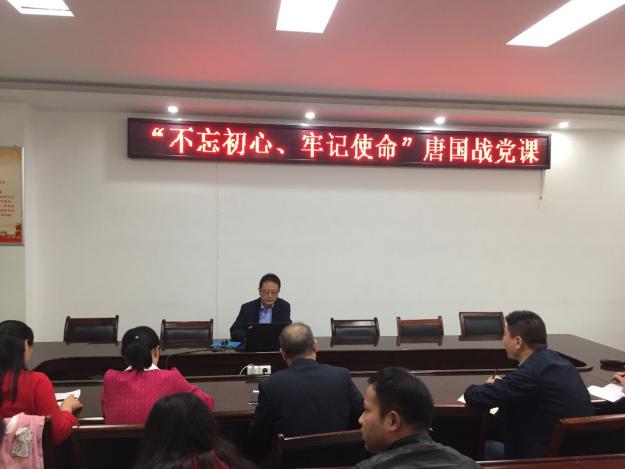10月15日下午,公司党委书记唐国战在323会议室以“不忘初心、牢记使命,做新时代优秀共产党员”为题讲授专题党课。学院各教研室主任、支部书记以及员工党员共同参加。