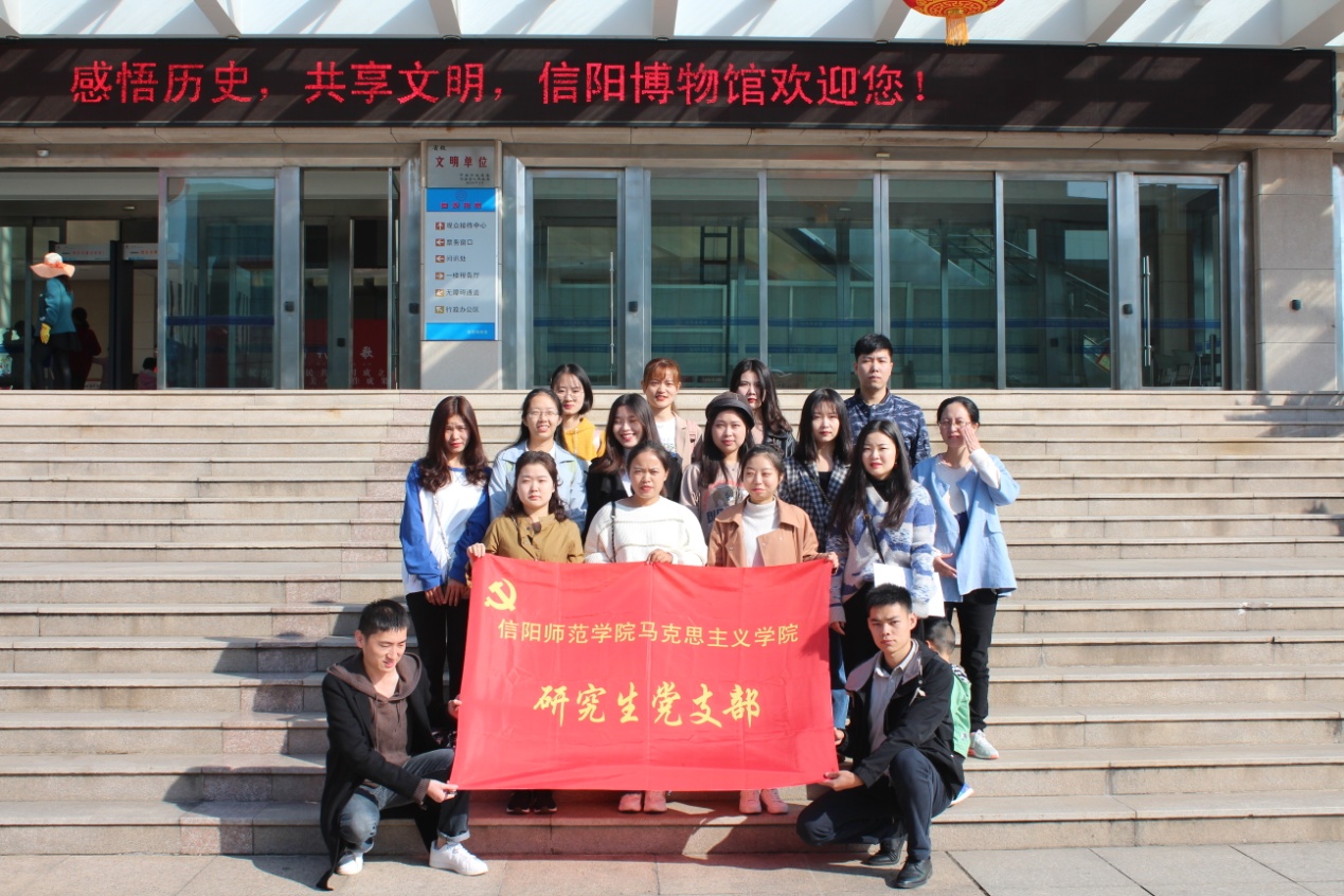 为丰富“不忘初心、牢记使命”主题教育活动形式,10月19日上午,研究生党支部组织全体党员和部分员工来到信阳市博物馆,通过感悟历史、共享文明,开展“守初心、担使命、筑青春”主题党日活动。
