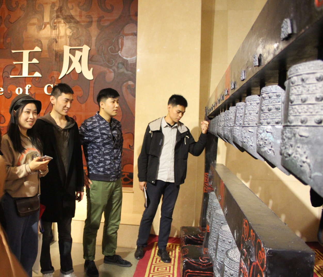 信阳市博物馆以“大气、震撼、简洁、环保”和“古老家园、现代表述”的陈展理念,突出了展示内容的思想性、知识性、地域性和新颖性,以“淮上故园----信阳历史文化之旅”为主题,以豫南历史发展的脉络为序,通过远古家园、淮上诸侯、楚地王风、天下根亲、茶韵天香、豫风楚韵等六大板块,全面、多维地展现和诠释信阳厚重的文化气象。同学们在其中徜徉感受,获益匪浅。