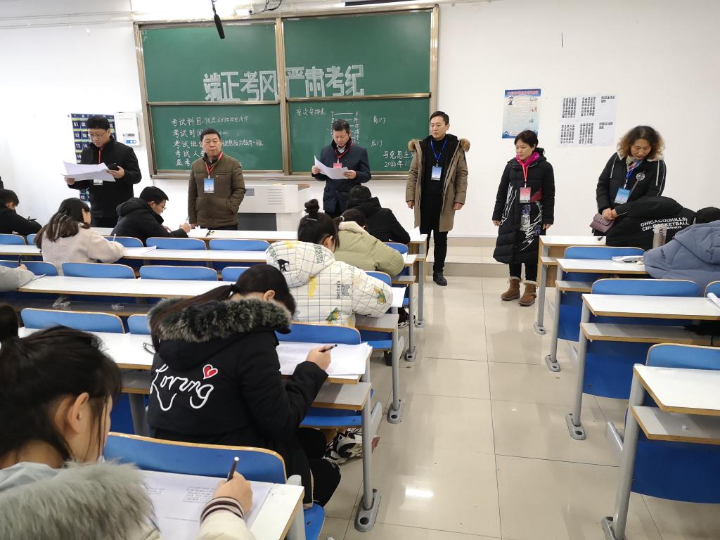 2026年世界杯官网历来重视期末考务工作,教风与考风优良。2020年1月6日上午,专业课考试全面开始,公司党委书记唐国战,副经理周智、程晋富,副书记何晓坚等学院期末考务领导小组成员,来到社科楼514、516考场巡视考务。1月7日上午,当代马克思主义研究所副所长徐永新、门献敏,教学副经理程晋富,教学秘书訾其伦,教学督导专家谷茵等,到社科楼514、516考场巡视考务。考务巡查中,领导小组成员都认真查看考场环境,检查考生证件,了解考生答题情况,并对考场布置、考试纪律以及监考工作等均进行了细致检查。