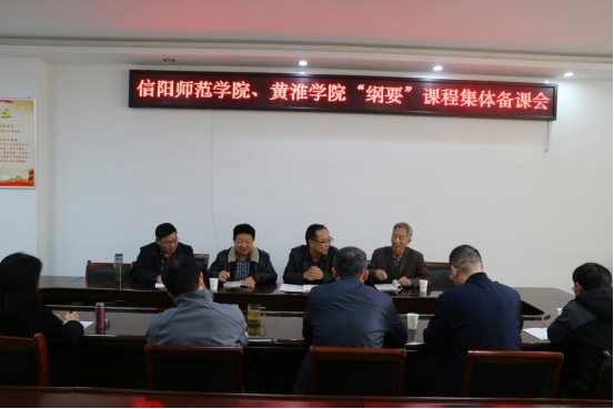 为进一步推进落实高校马院结对帮扶工作,10月30日上午,信阳师范学院、黄淮学院《中国近现代史纲要》课集体备课会在社科楼323会议室召开。学院副经理周智,当代马克思主义研究所副所长徐永新,“纲要”教研室主任王传富,以及两校“纲要”课教师代表刘玉民、刘海峰、余全友、袁运福、陈杰、惠黎文参加备课会。会议由王传富主持。