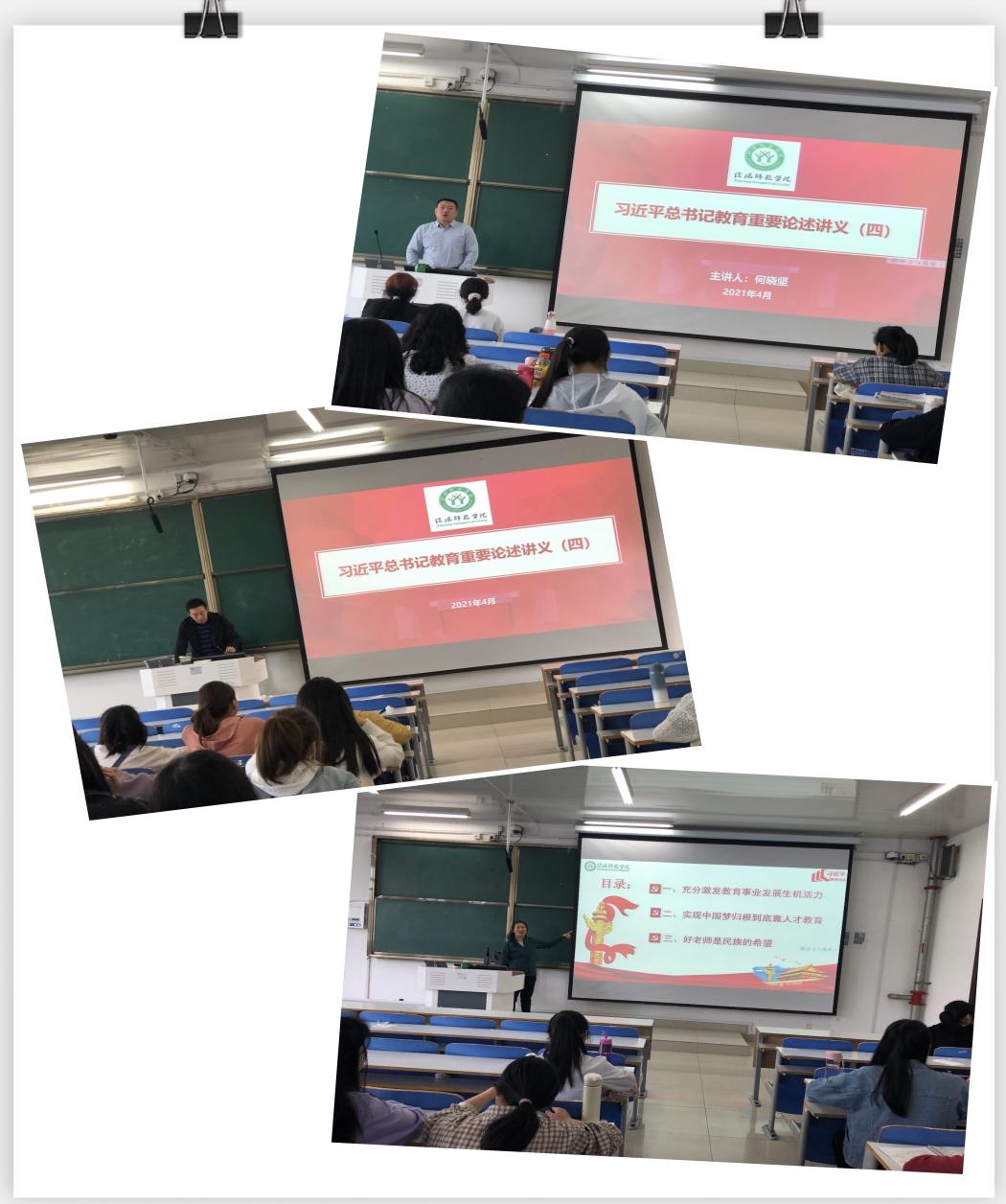 结合《习近平总书记教育重要论述讲义》及习总书记在全国教育大会、全国高校思想政治工作会议、学校思想政治理论课教师座谈会上的系列重要讲话精神和新时代教育改革发展形势,教学小组教师将课程分为四个板块,对习总书记关于我国教育最鲜明的底色、教育发展要走自己的路、中国梦的实现归根到底靠人才教育、好老师是民族的希望等方面的论述进行深入系统讲解,让员工对习总书记关于教育的重要论述有全面深刻的认识和系统性的掌握,让员工学有所得、学有所感、学以致用、用以促学,从而增强员工作为师范生的责任感与使命感,积极为中国的教育事业贡献力量。(文稿:张琳)