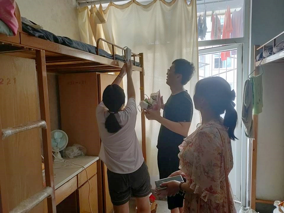 随后,唐国战、周智带领办公室工作人员对学院各办公室、教研室、资料室、会议室、教室等场所的水电设施、消防设备、空调使用等情况进行了全面细致的检查。针对检查中发现的问题,进行了认真登记归类。徐永新、何晓坚组织卢云晓、郑晨霞等研究生秘书和曹栋、陶青青等本科生辅导员逐一检查了员工宿舍,对存在的隐患进行了及时提醒和改正。各班主任还将《暑期安全员工承诺书》印发给每位员工,组织员工签署承诺书,并将《暑期安全家长告知书》发送到各班家长群,与家长一起共同构建安全保障网络。对个别家庭遇到突发事故的员工还及时采取了帮扶措施。