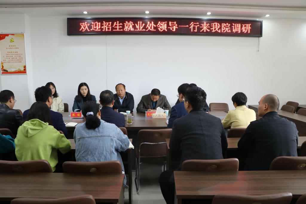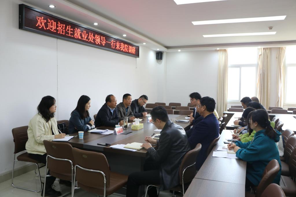 本次调研围绕招生工作和就业创业工作两个方面展开。首先,朱四倍书记结合实际,对公司新生报到情况及毕业生就业等情况作出详细汇报,并提出相关问题。他指出,受当前经济形势、疫情、双减政策的影响,公司毕业生就业压力增大,同时,公司考研员工多,竞争激烈,“二战”员工人数增加,这对毕业生去向落实率有所影响。随后,赵明民处长针对问题提出有效建议并指出,在十四五期间,要做好新高考改革下招生专业和招生数量的规划,发展好作为国家一流的思想政治教育专业,培养马克思主义接班人,认真落实高等人才培养政策。对于就业创业工作,他提出,学院要做好员工就业技能培训工作,提高员工创新意识与创新能力,建立人才招聘互动机制,实现就业指导全程化、全员化。